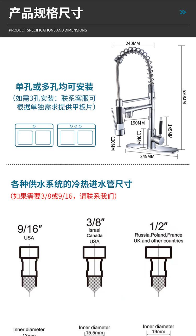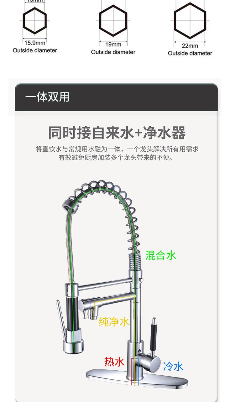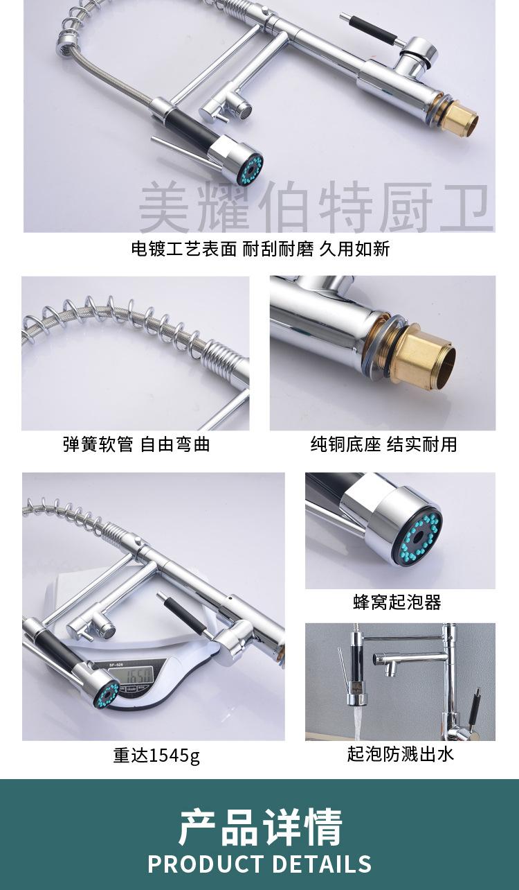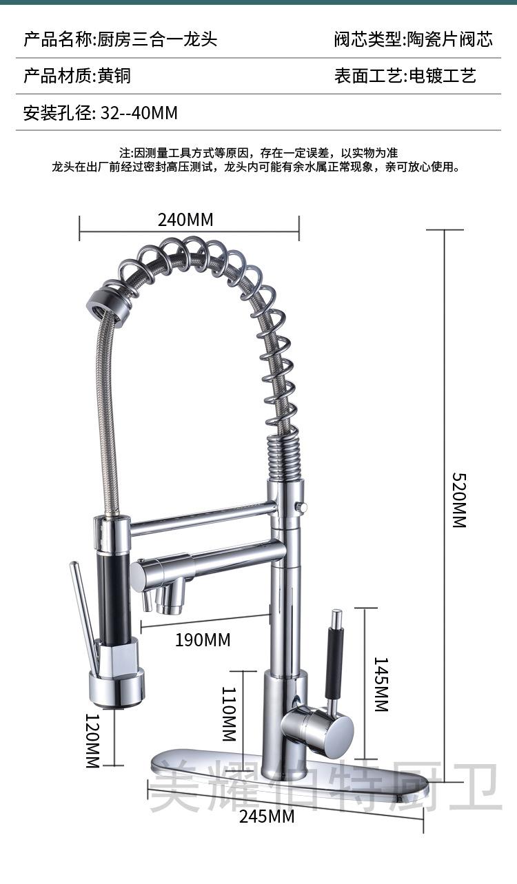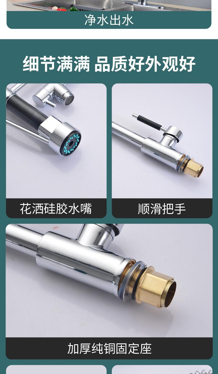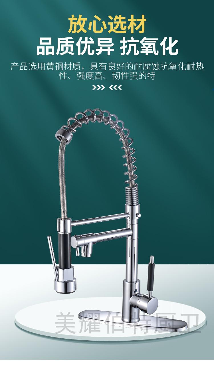 Grifo de cocina de resorte de doble función transfronterizo, grifo de fregadero retráctil giratorio universal para lavar verduras en agua fría y caliente.