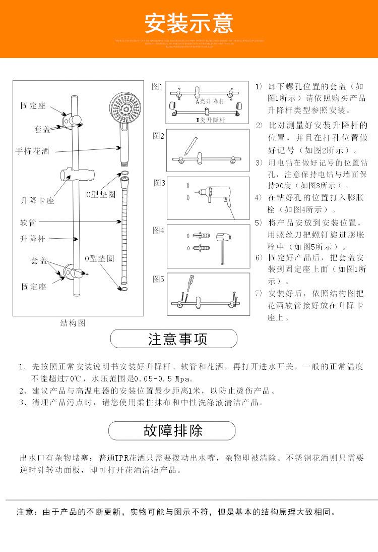 Square lifting rod suit, Round hand spray simple suit, Single faucet