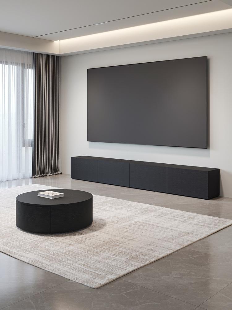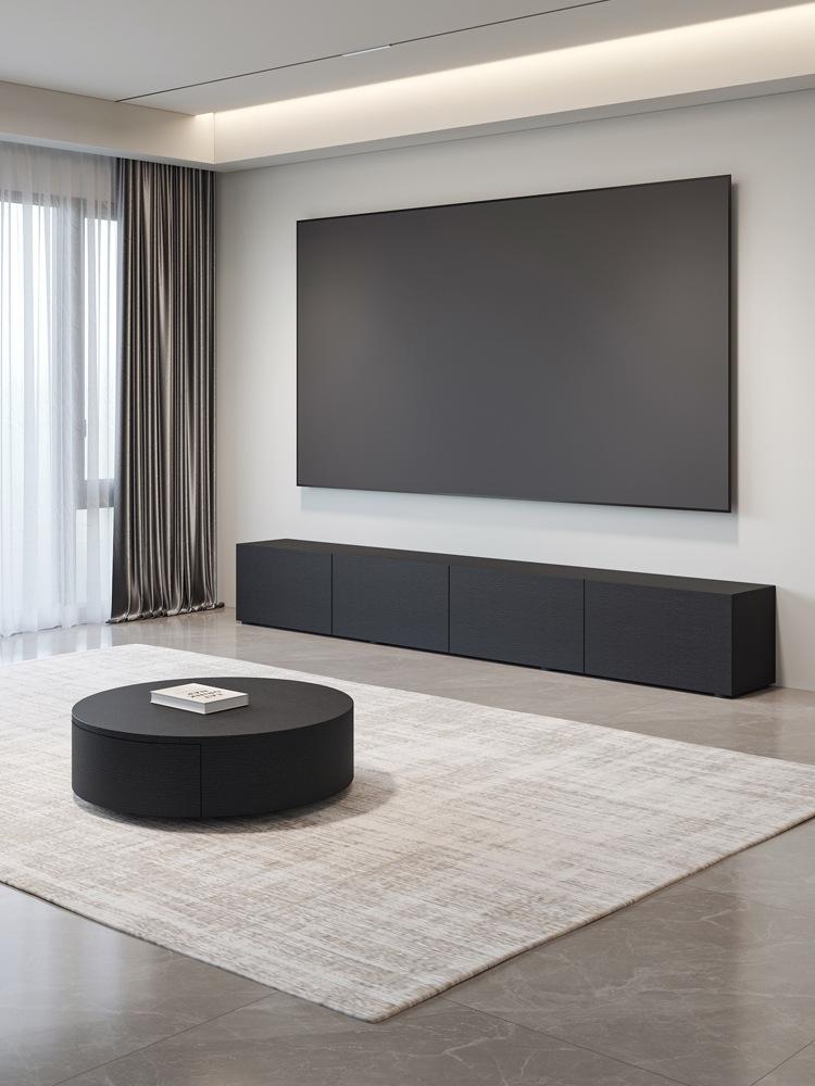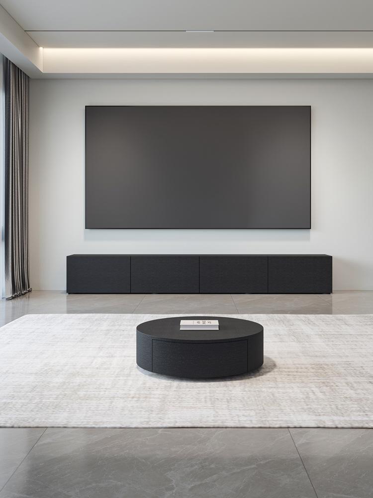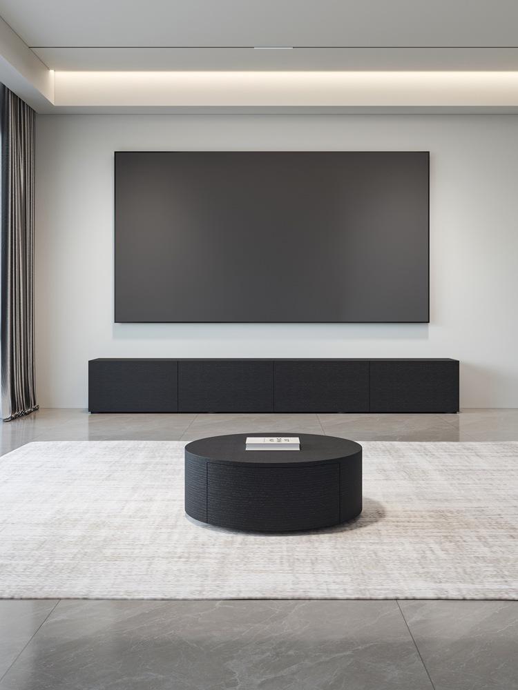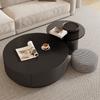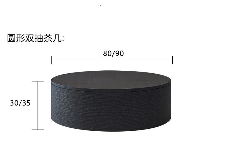 Mesa de Centro Moderna Simple Negra Minimalista Redonda Doble Cajón Apartamento Pequeño Hogar Sala de Estar Madera Maciza Multicapa