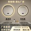Espejo de Baño Redondo Nórdico Espejo Inteligente Antivaho de Pared con Sensor Táctil Luz LED Espejo de Maquillaje