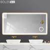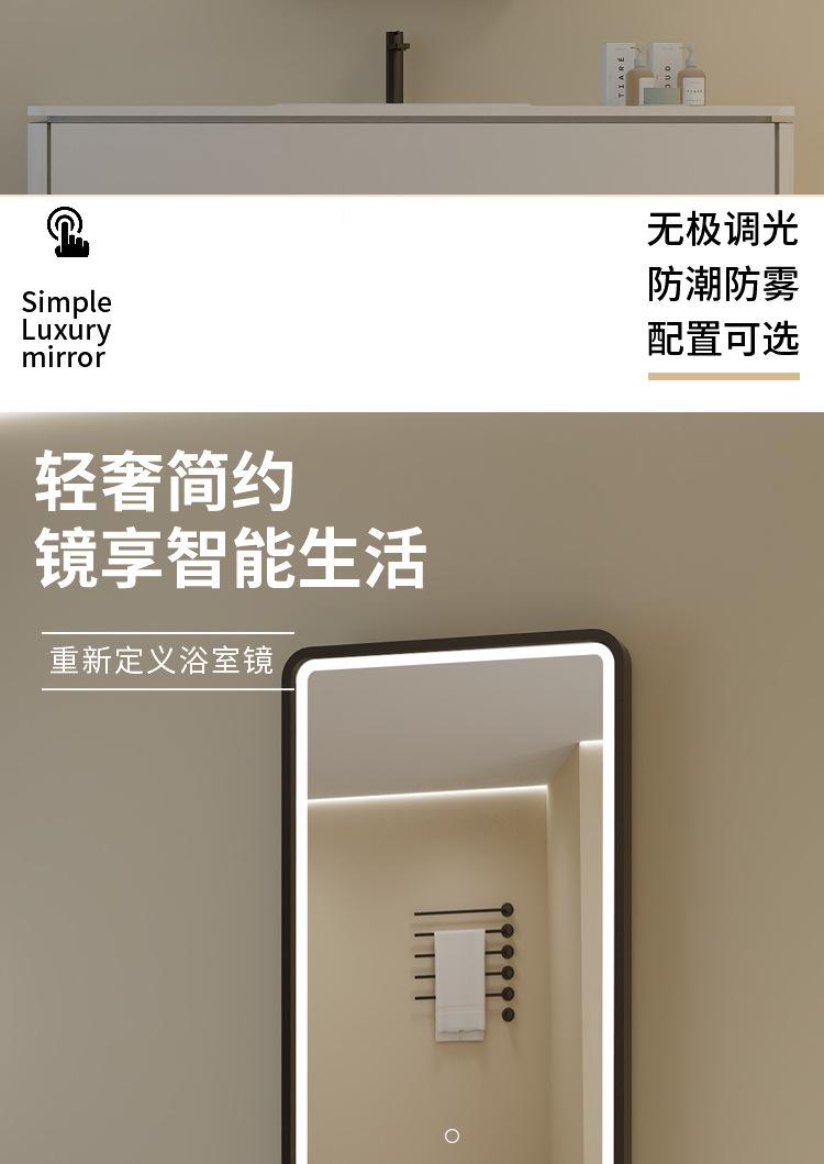 Espejo de baño inteligente para el hogar con marco cuadrado de aleación de aluminio, pantalla táctil con inducción de luz