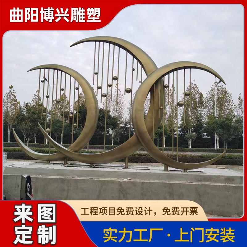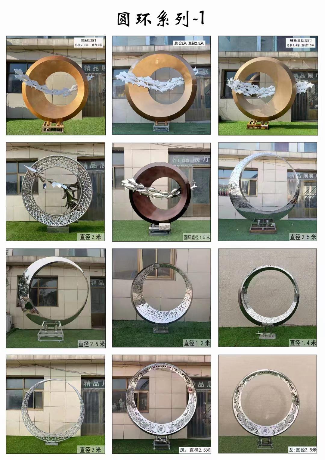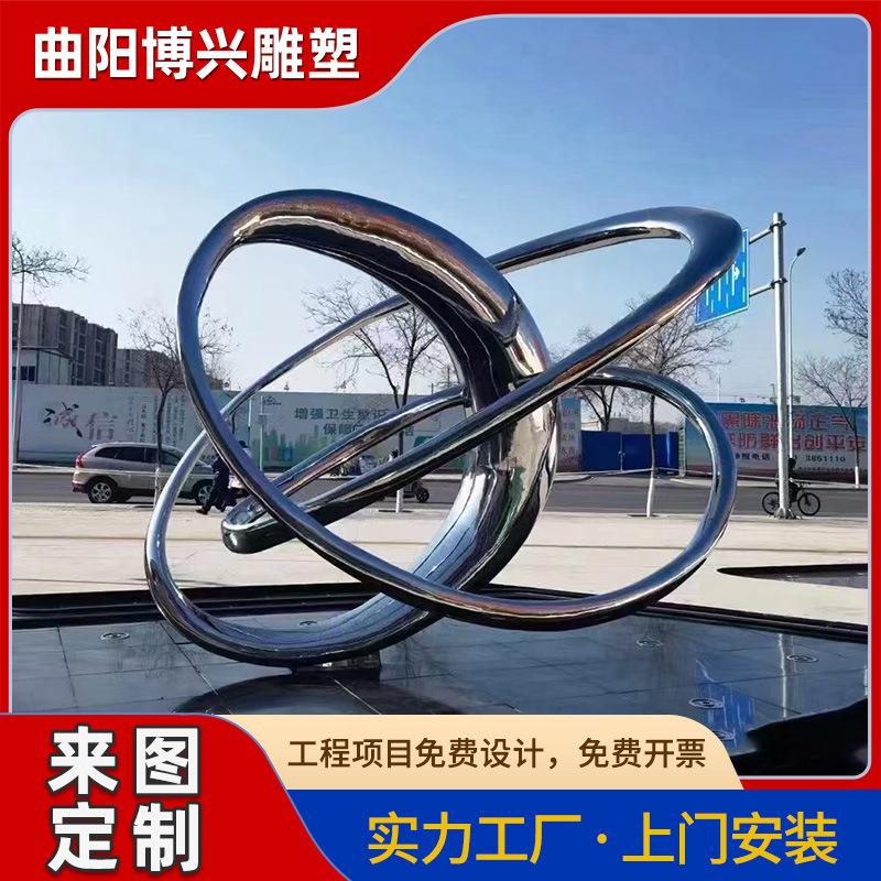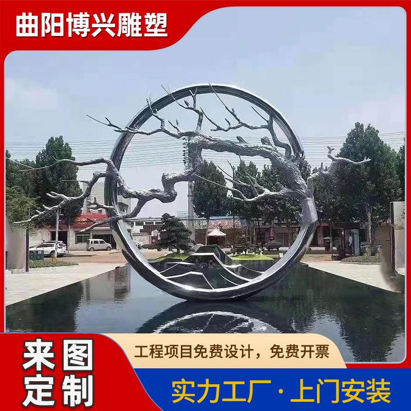 Large stainless steel ring water feature sculpture creative branch growth landscape outdoor stainless steel round metal ornaments