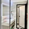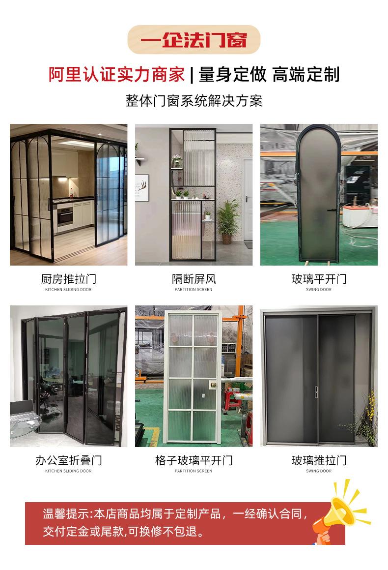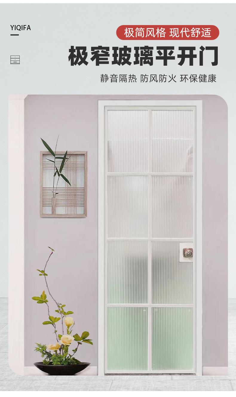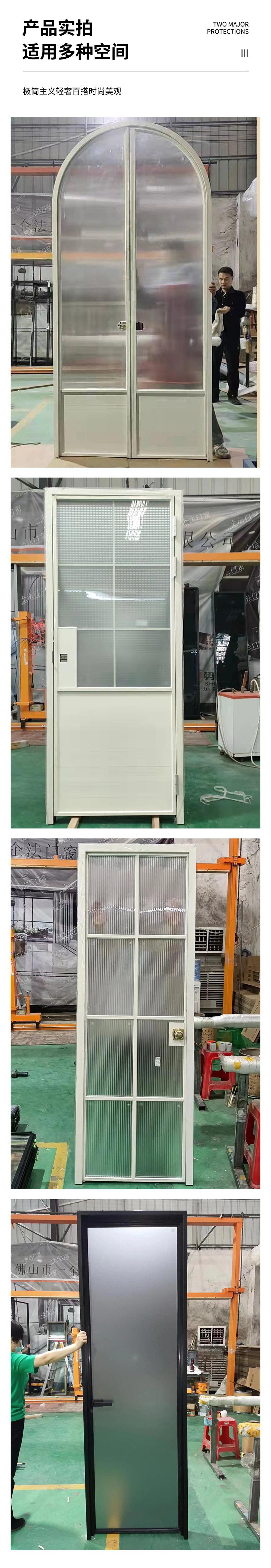 Puerta de vidrio arqueada de moda para baño, cocina, lado estrecho, puerta batiente a cuadros, puertas y ventanas corredizas de interior de aleación de aluminio