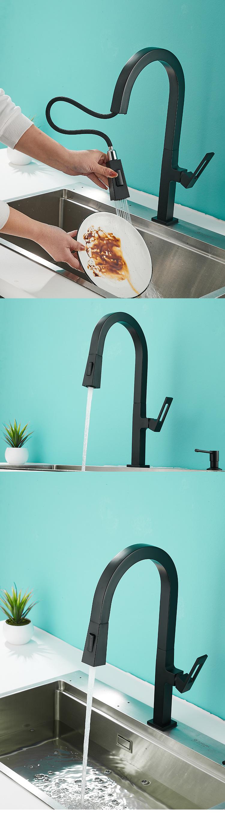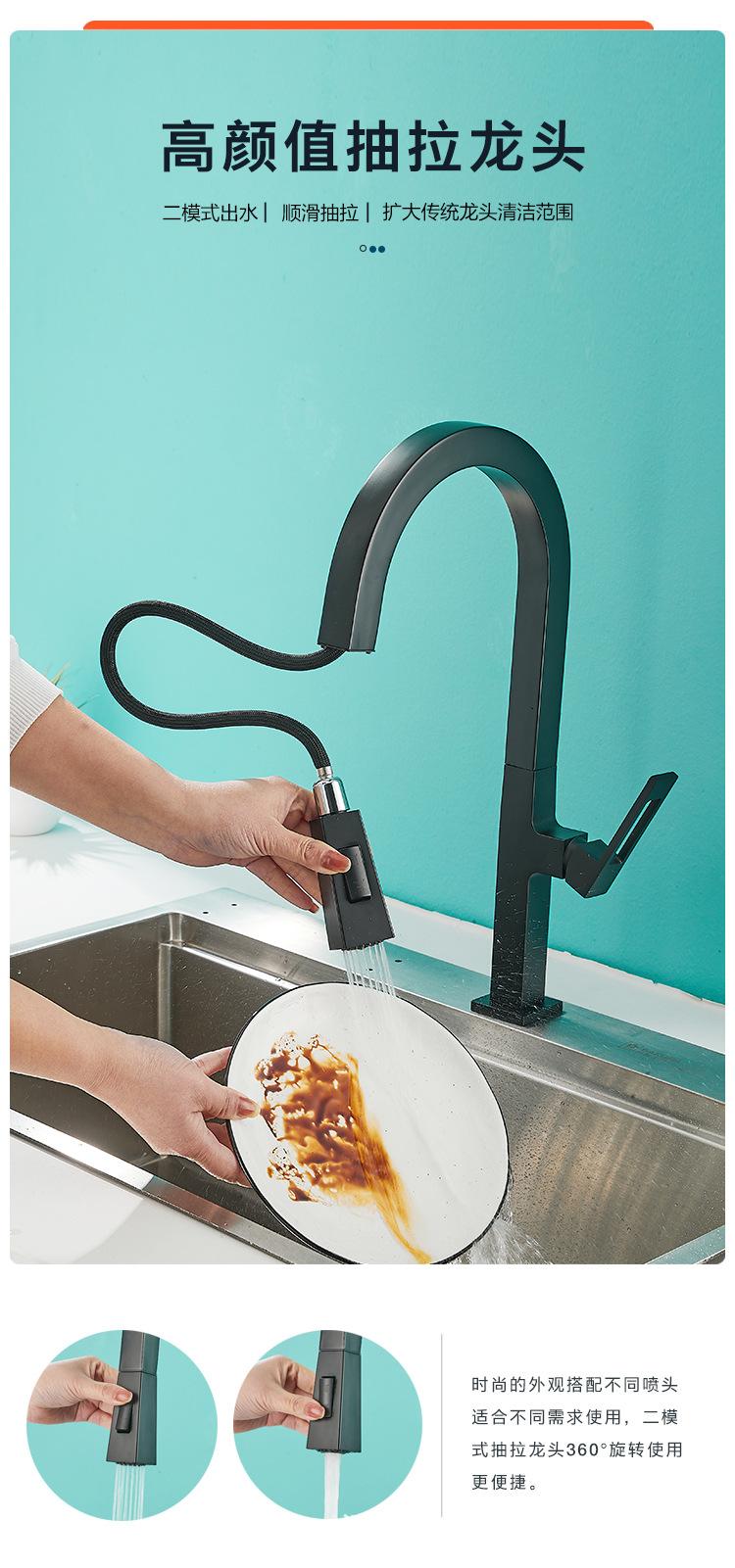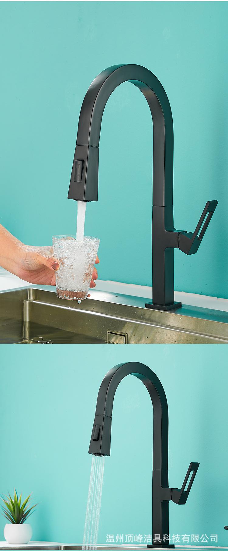 Grifo de Cocina Negro Caliente y Frío Transfronterizo Fregadero Fregadero Boquilla Todo Cobre Giratorio Extraíble Comercio Exterior