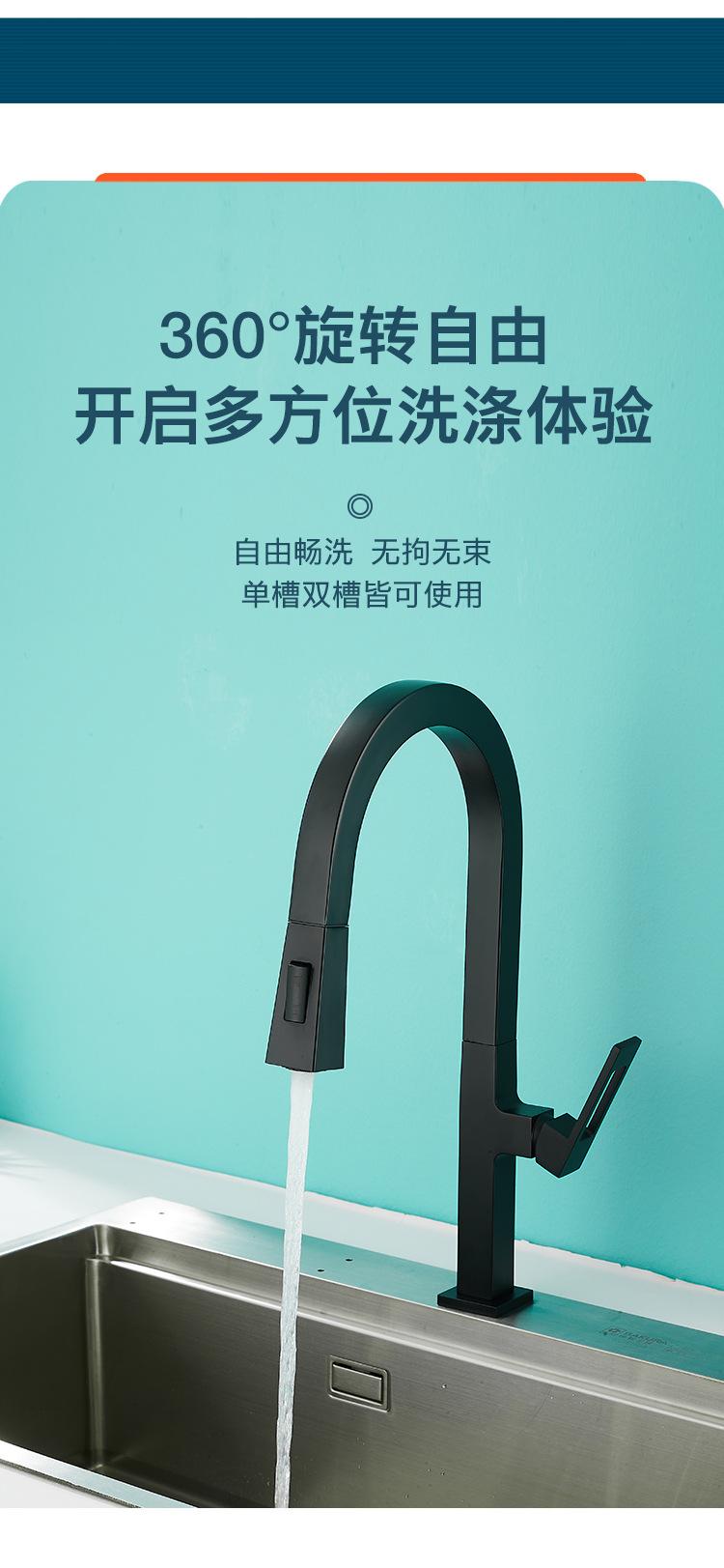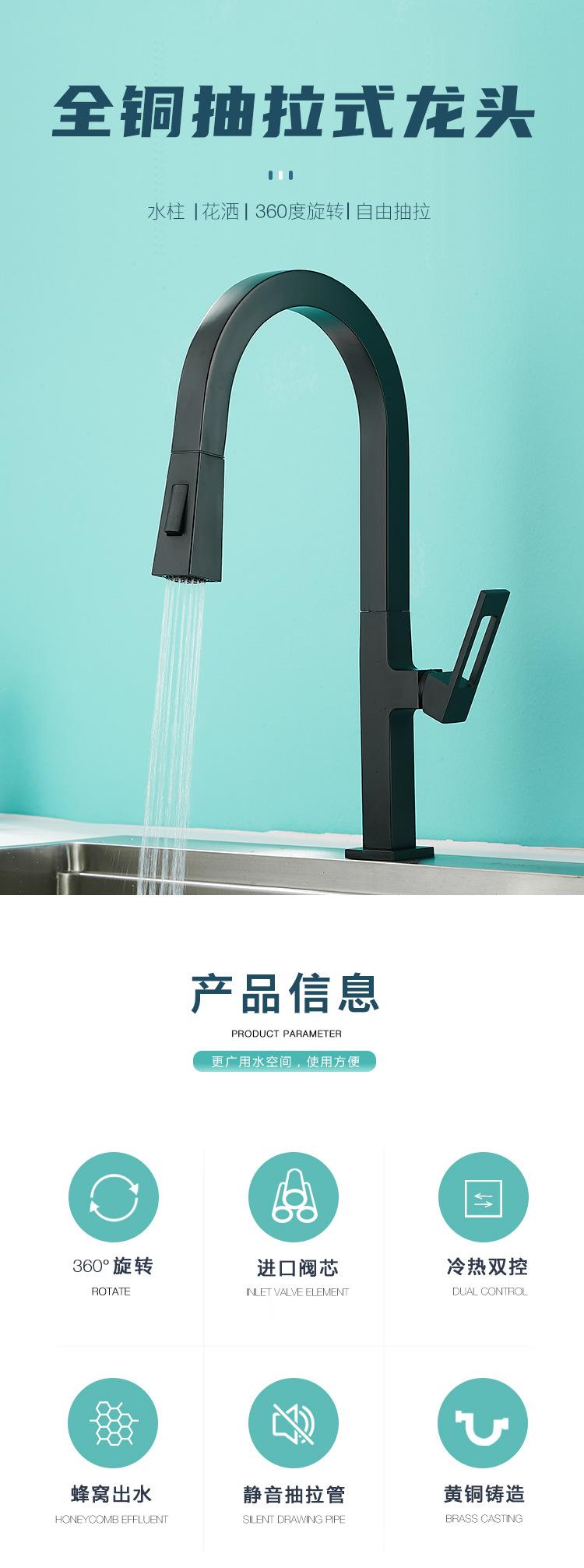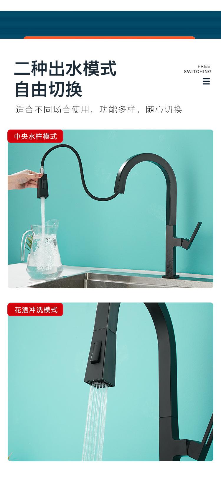 Grifo de Cocina Negro Caliente y Frío Transfronterizo Fregadero Fregadero Boquilla Todo Cobre Giratorio Extraíble Comercio Exterior