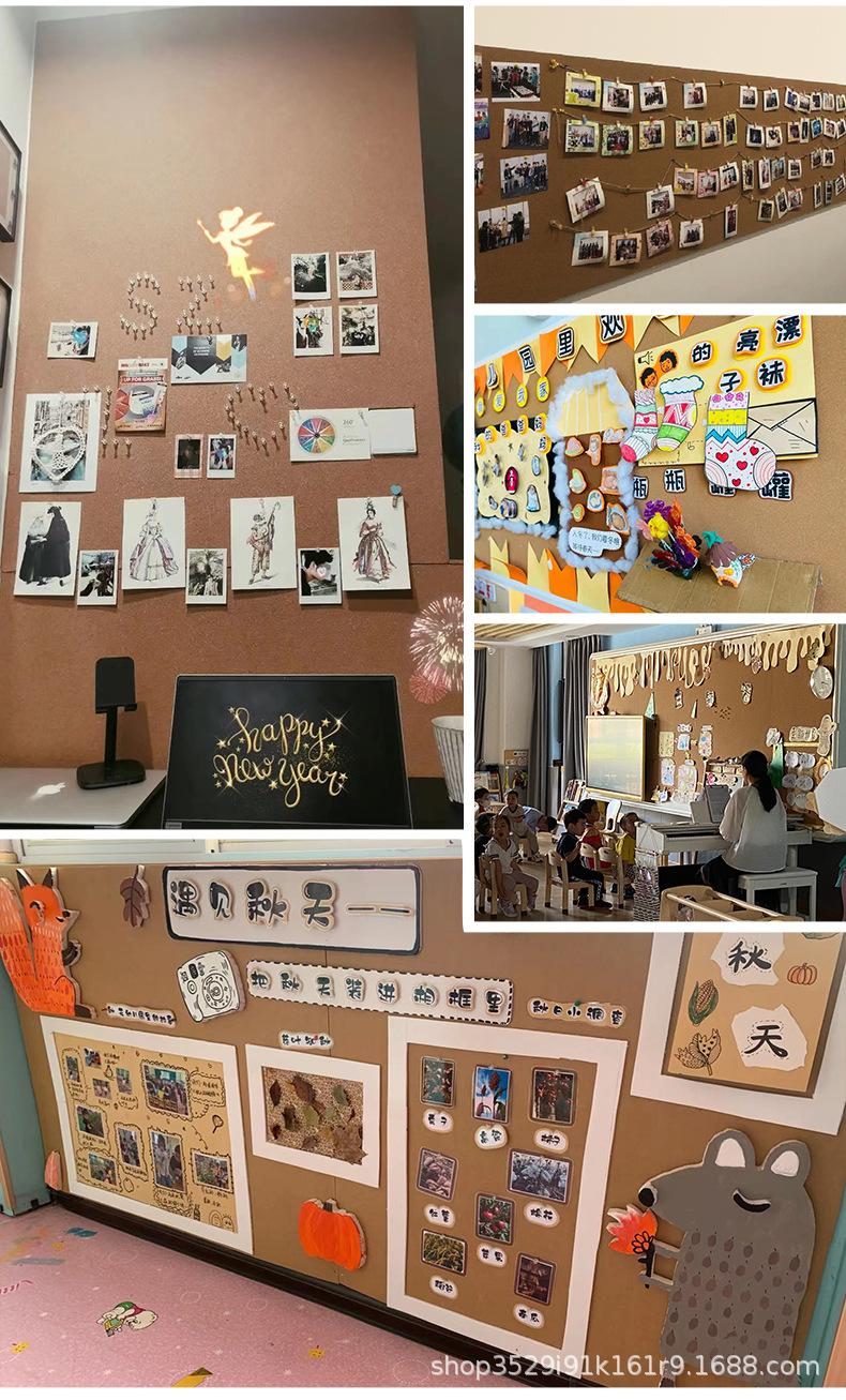 [Fabricante de origen] Fábrica de bobinas de corcho, venta al por mayor, tablero de exhibición de paneles de yeso, tablero de mensajes de pared con fotos para jardín de infantes