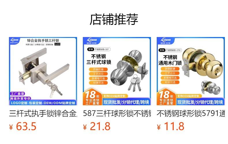 Cerradura de Cilindro de Aleación de Aluminio Bronce Níquel Arena Manija de Tres Polos para Puerta de Hogar, Baño, Almacén, Venta al por Mayor, Cerradura de Seguridad