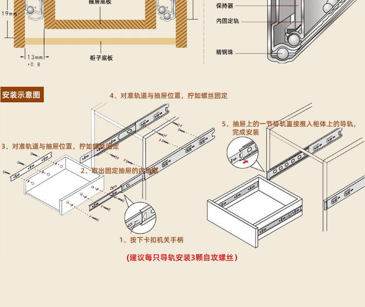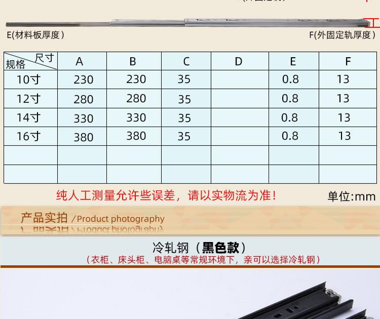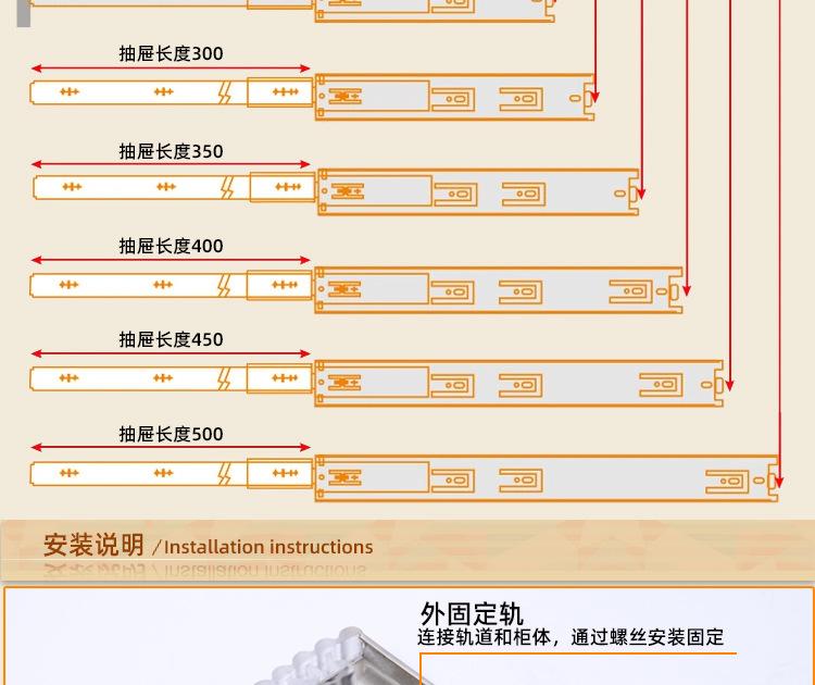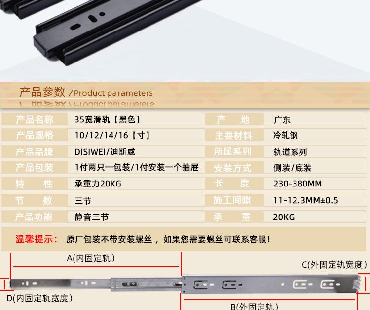 Rieles deslizantes de tres secciones de 35 de ancho:10 pulgadas12 pulgadas14 pulgadas16 pulgadas18 pulgadas