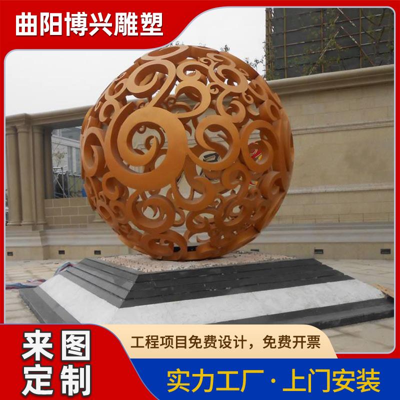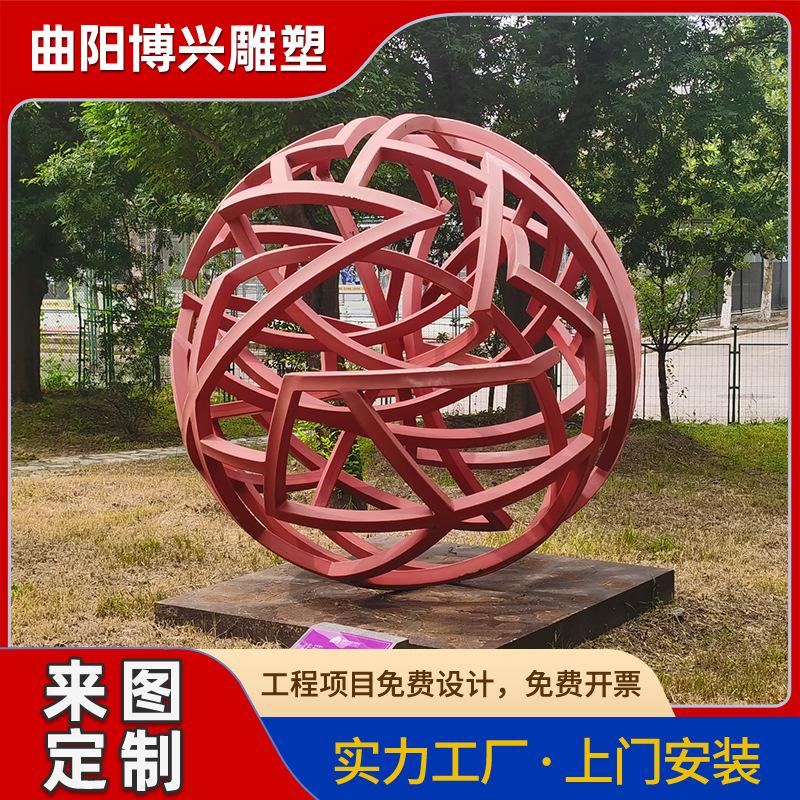 Creative outdoor stainless steel hollow ball sculpture manufacturer modern minimalist Park Green Space Metal l...