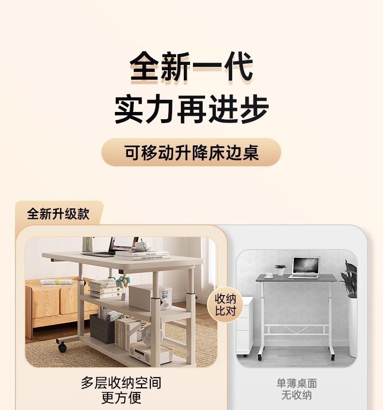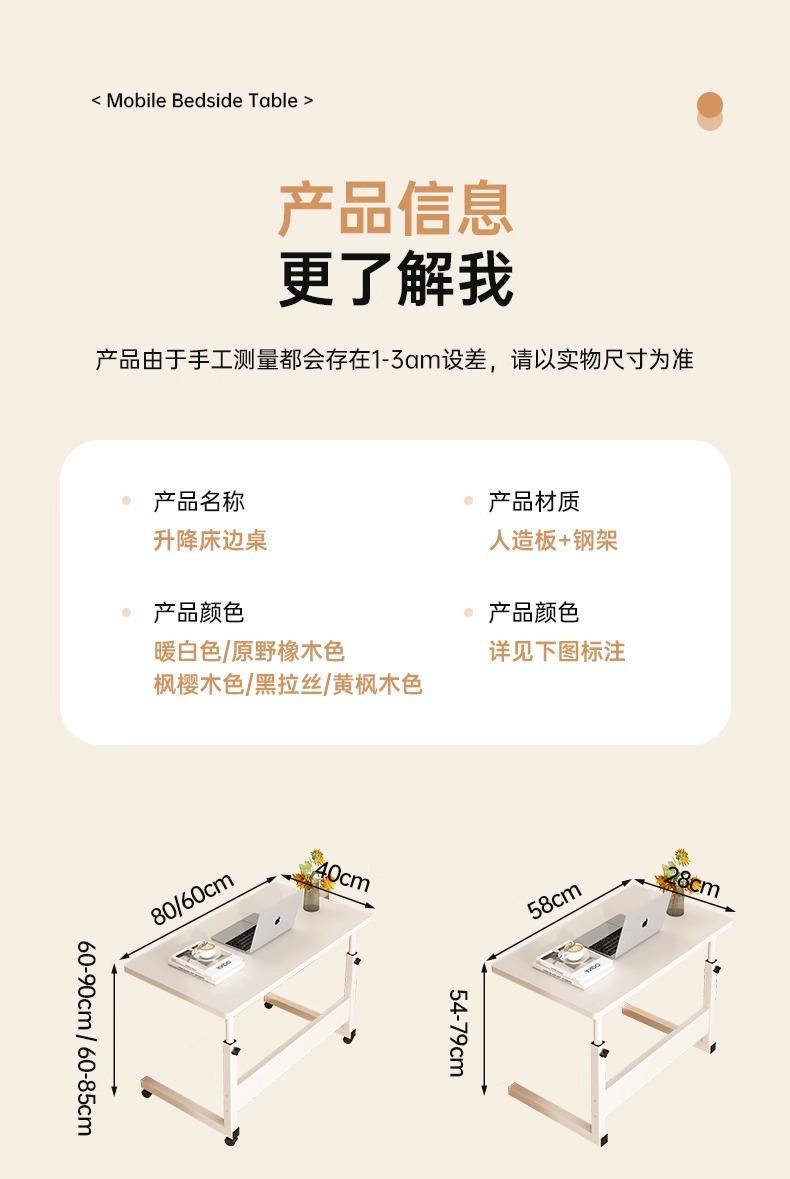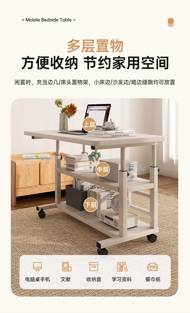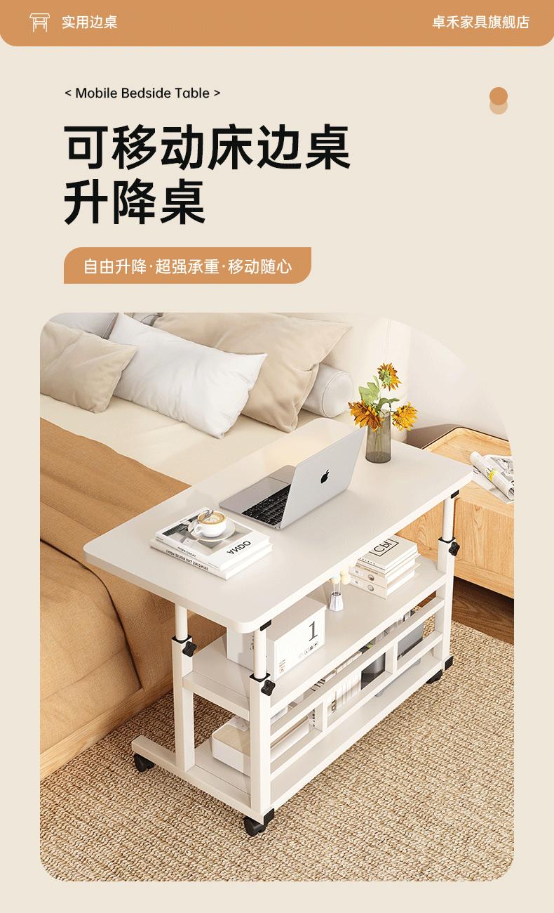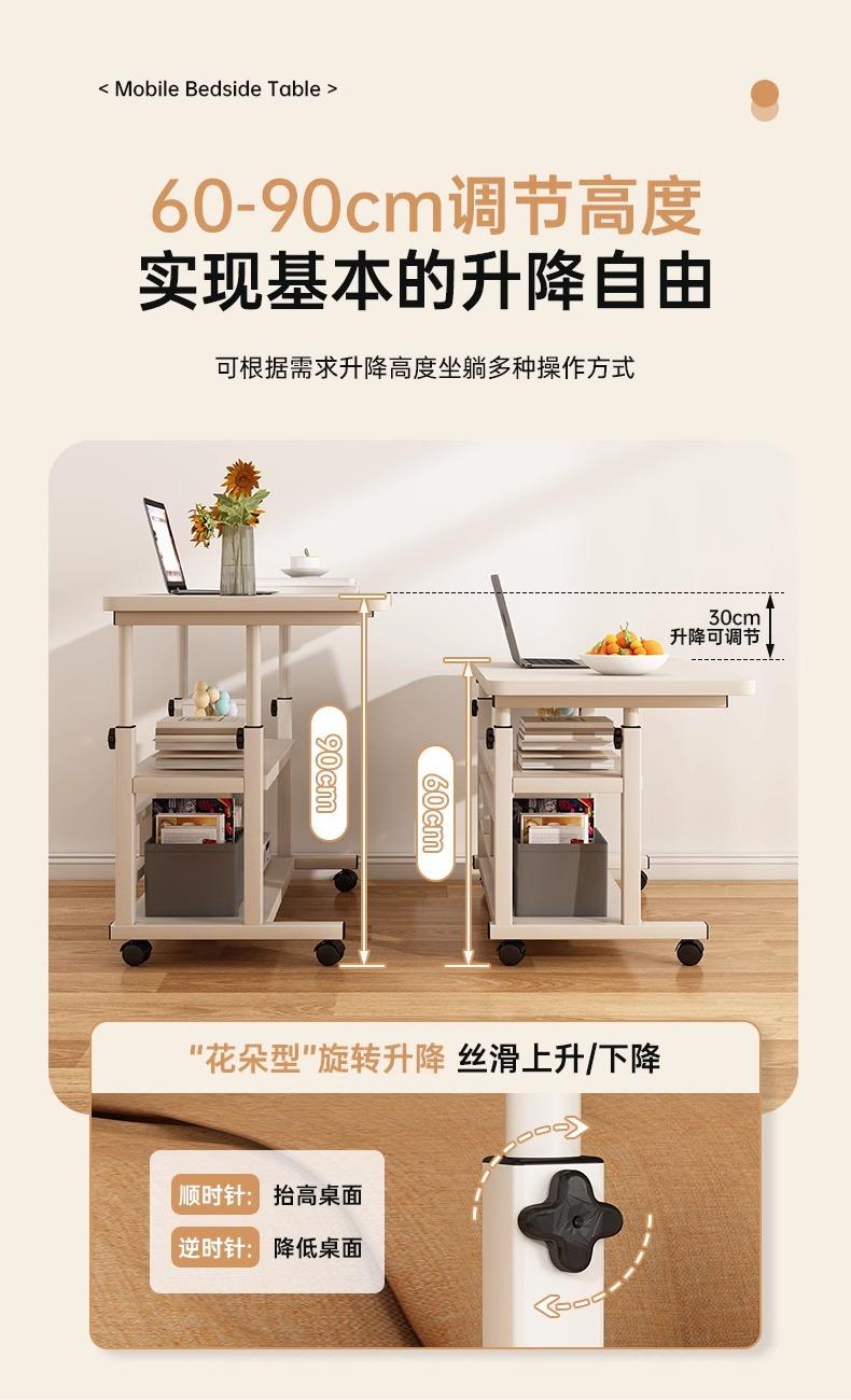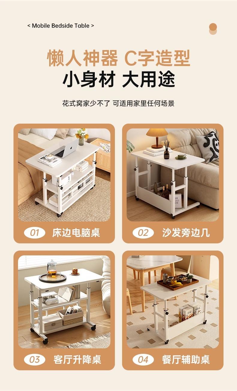 Mesa Elevable Móvil para el Hogar con Ruedas Mesa Sencilla para Sofá de Sala de Estar Mesa Perezosa Mesa de Noche para Dormitorio Mesa Pequeña para Balcón