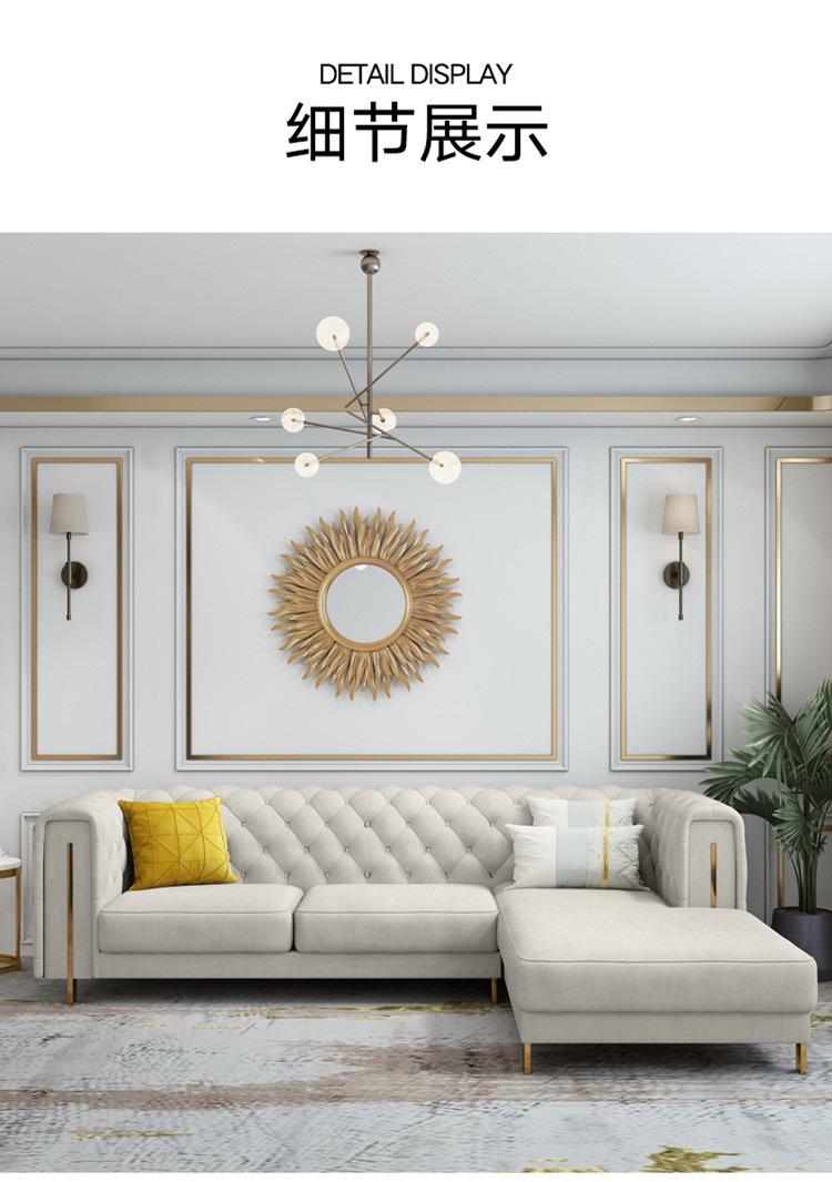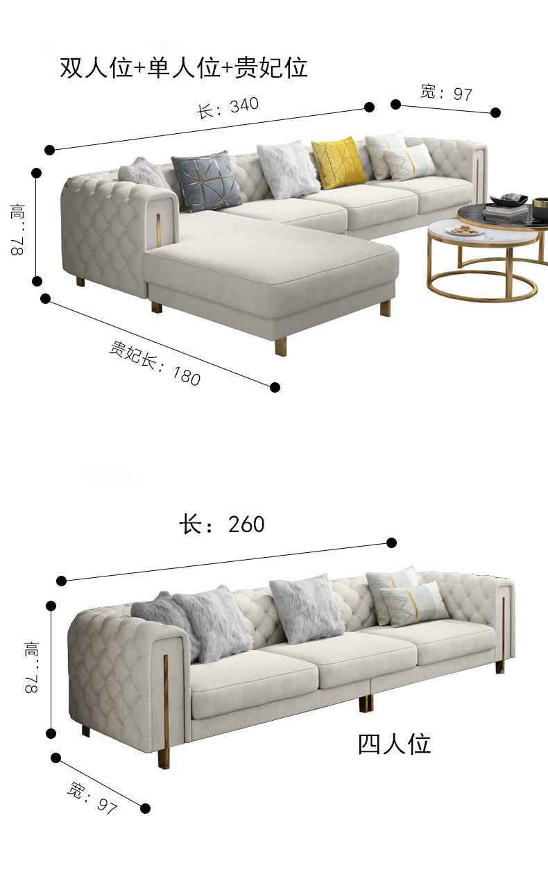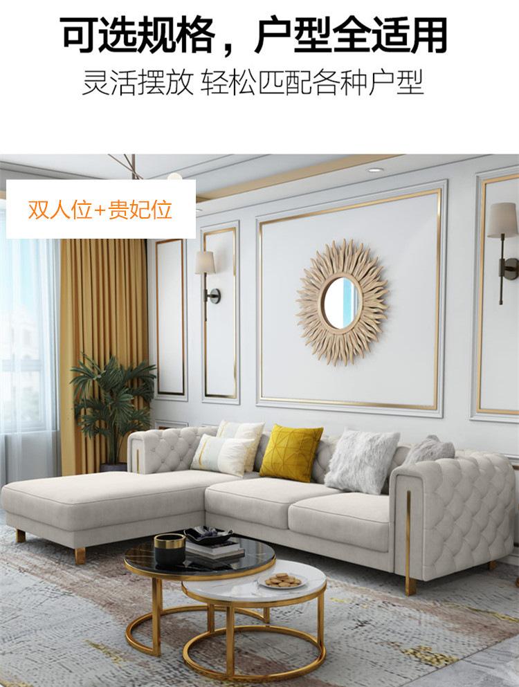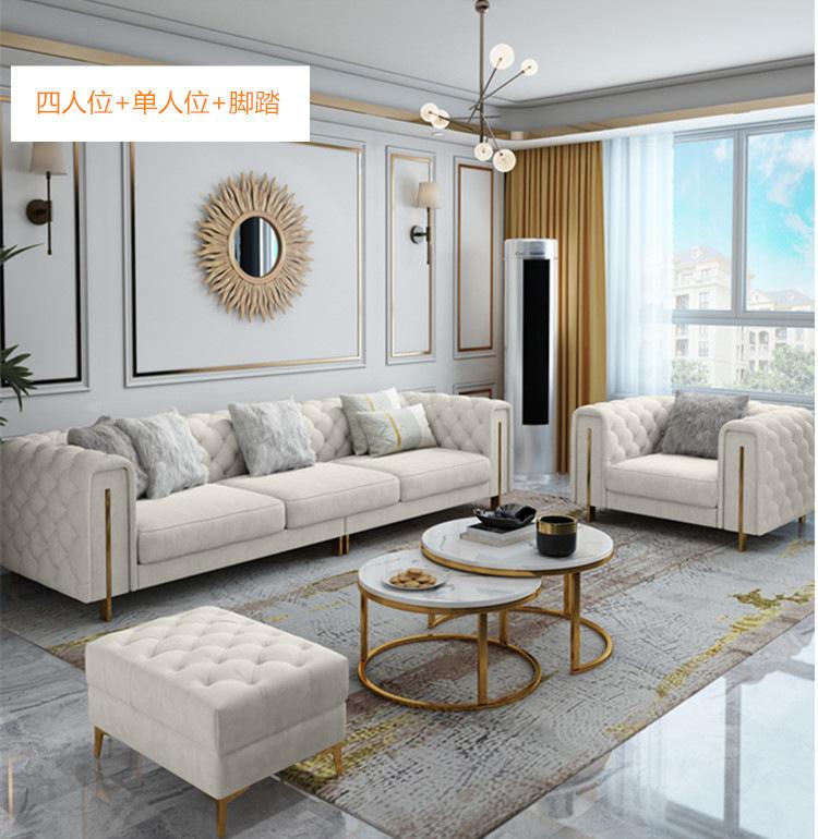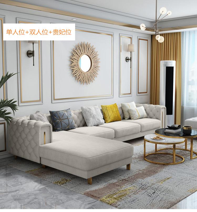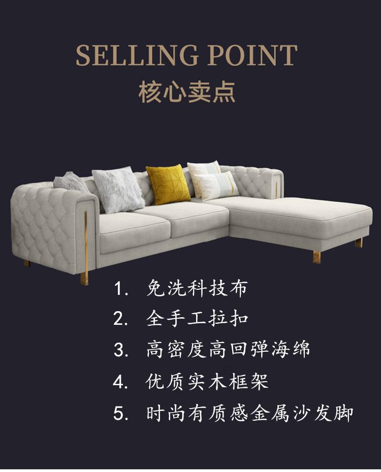 Estilo Americano Lujo Ligero Estilo Hong Kong Postmoderno Sala de Estar Tela con Hebilla de Tecnología Lavable Sofá Combinación de Esquina para Apartamento Grande Sofá Chaise Longue