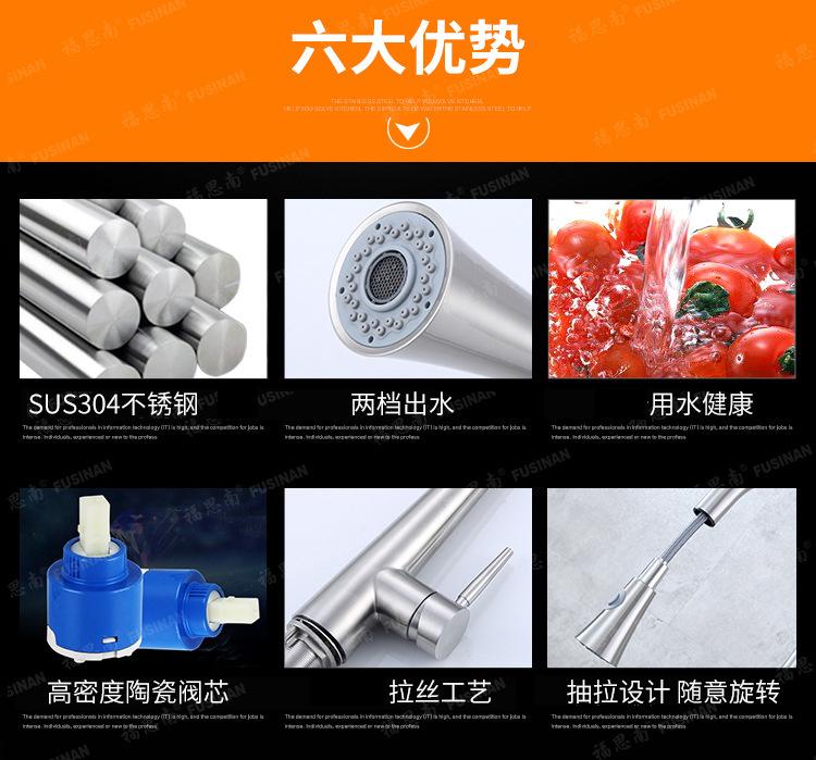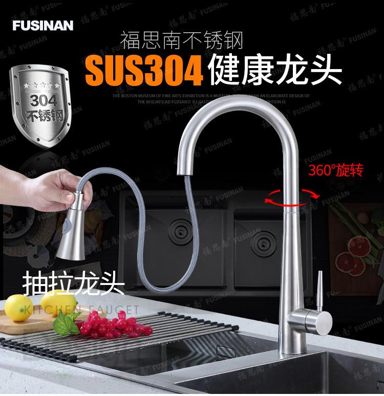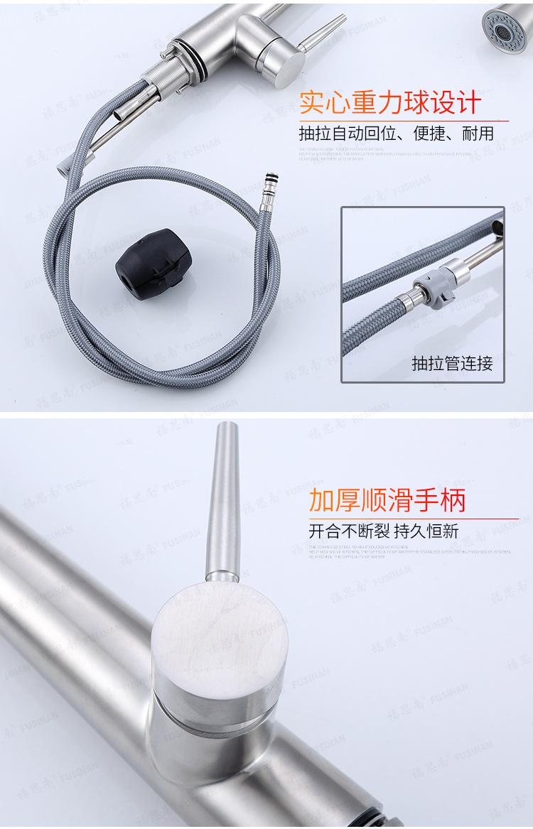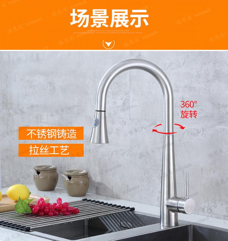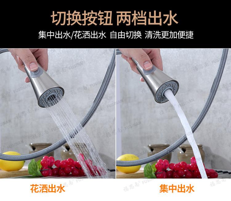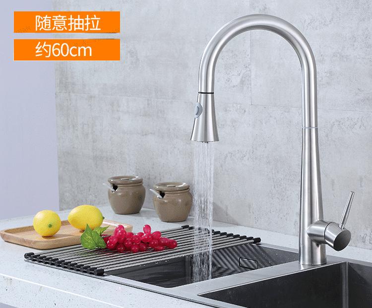Gris plomo Acero inoxidable 304 Trefilado Fregadero de cocina de doble modo extraíble tipo cohete Lavabo para verduras Grifo de agua fría y caliente