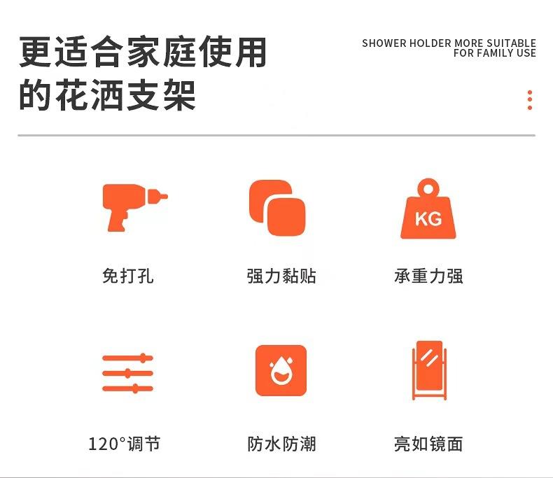 Boquilla de ducha de baño, asiento colgante, soporte de ducha sin perforaciones, base de soporte de cabezal de ducha ajustable, accesorios