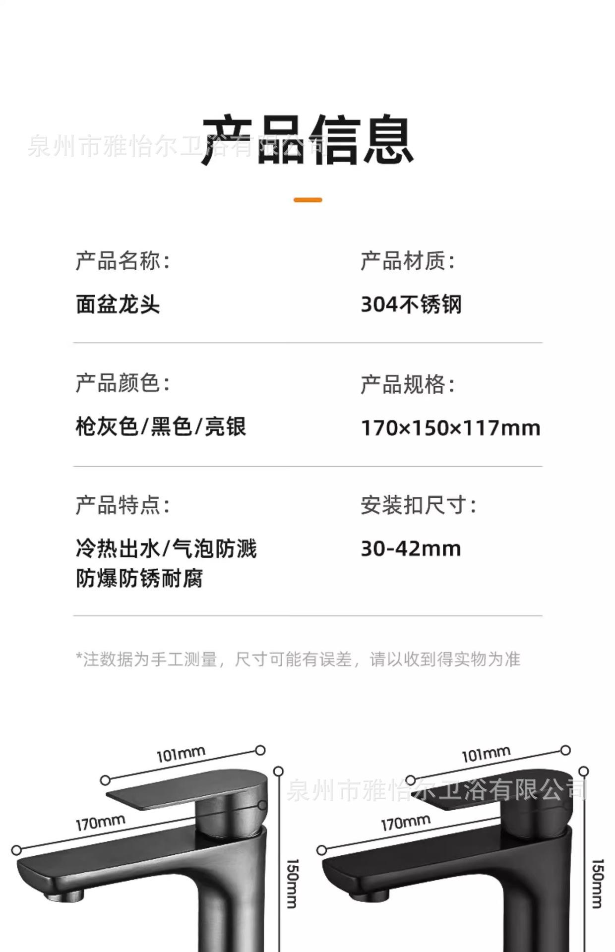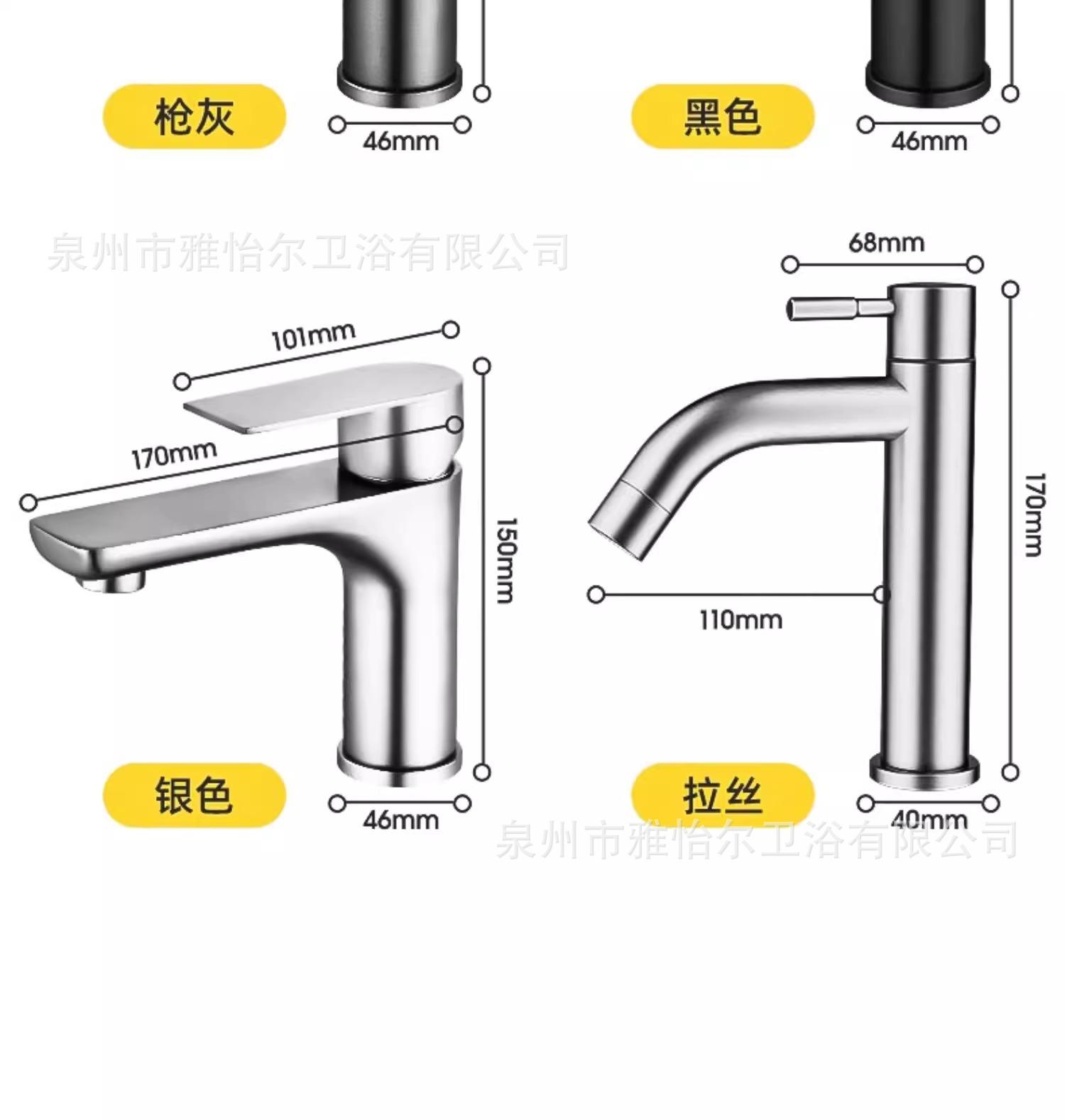 Type A- gun gray-single cold stainless steel faucet, Type A- gun gray-hot and cold stainless steel faucet, Typ...