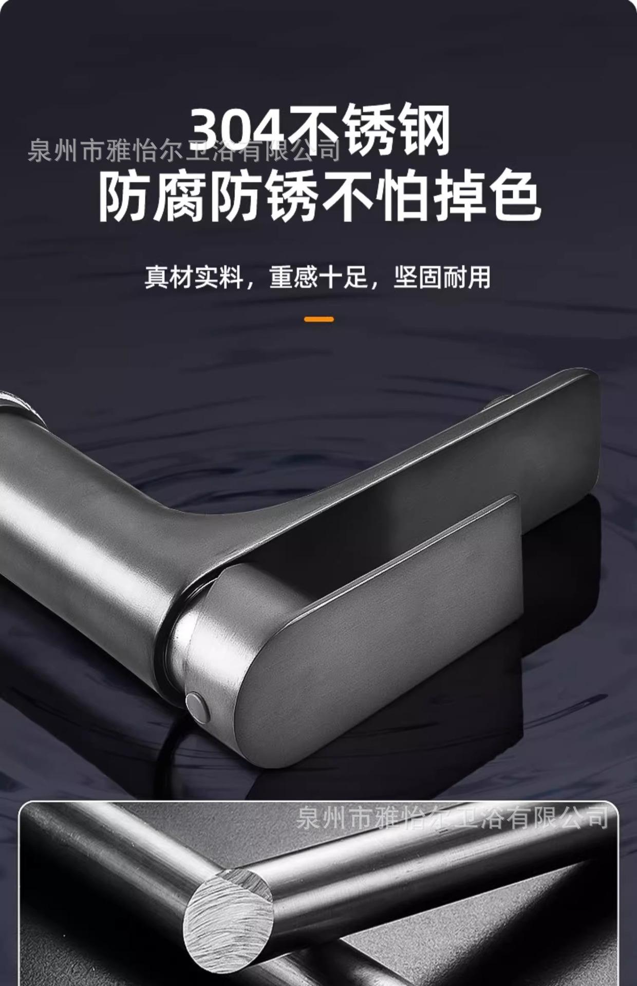 Compra Grifo de lavabo para lavabo de baño, de acero inoxidable, monomando de doble uso, con pistola de agua fría y caliente, color gris 304 al por mayor en Joom.pro