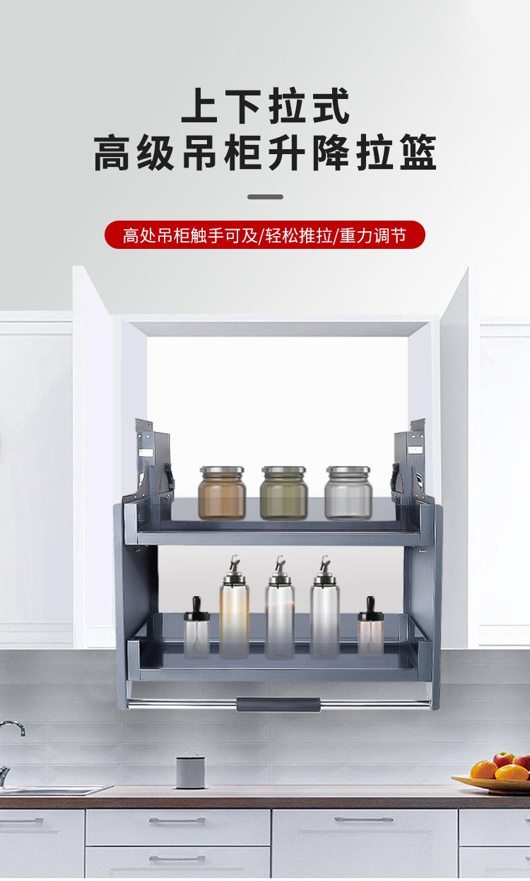 Cesta de cocina de elevación de aleación de aluminio, cesta inferior de almacenamiento, armario colgante, estante de almacenamiento desplegable, cesta para condimentos