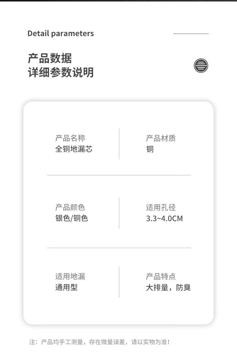 Desagüe de piso de cobre, núcleo de fila recta, desodorante, alcantarillado, artefacto antiolor, cubierta para inodoro, bajante a prueba de insectos, universal