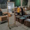Espejo de baño fábrica mayoreo espejo de borde de acero inoxidable HD cuadrado con soporte rueda espejo de piso espejo de tocador