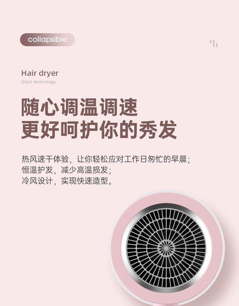 El secador de pelo plegable, de alta velocidad, alto viento y alta potencia puede brindar experiencia y disfrute a los usuarios. El mercado es muy amplio. Damos la bienvenida a las principales empresas de comercio exterior, mayoristas y minoristas, plataformas de comercio electrónico y empresas de compra de regalos corporativos a venir para intercambios y negociaciones.