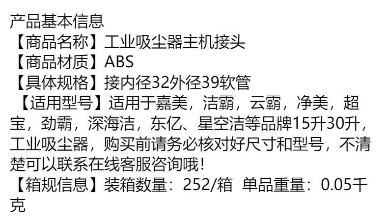 Compatible con accesorios de aspiradora industrial Chaobao Jieba, conector de host, adaptador de manguera, conector corto universal BF501B