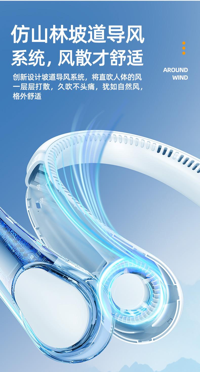 Ventilador de cuello portátil sin cables con carga USB para exteriores, de larga duración y fácil de usar.