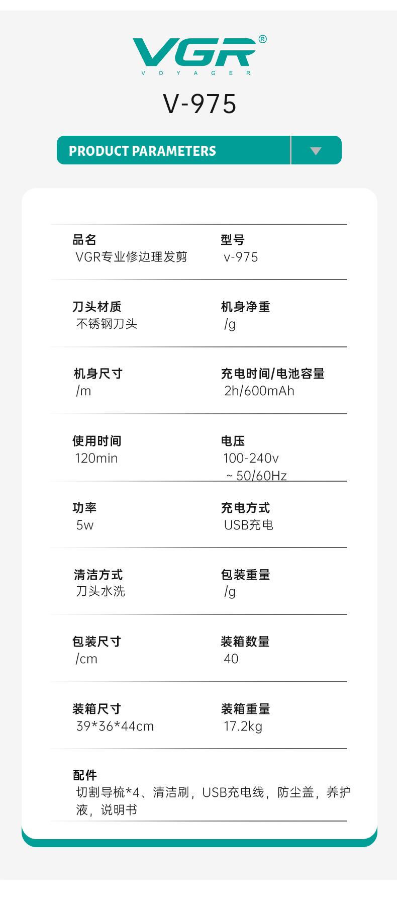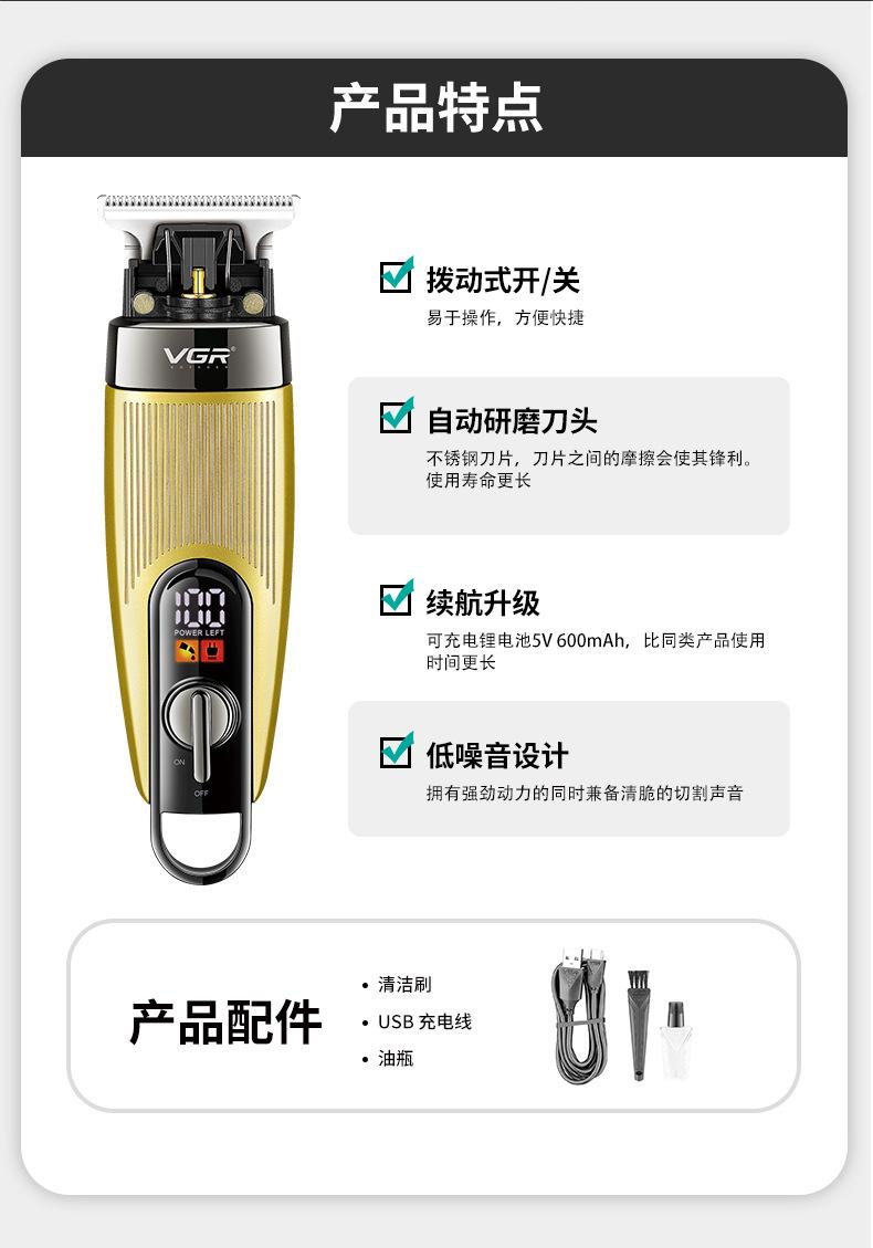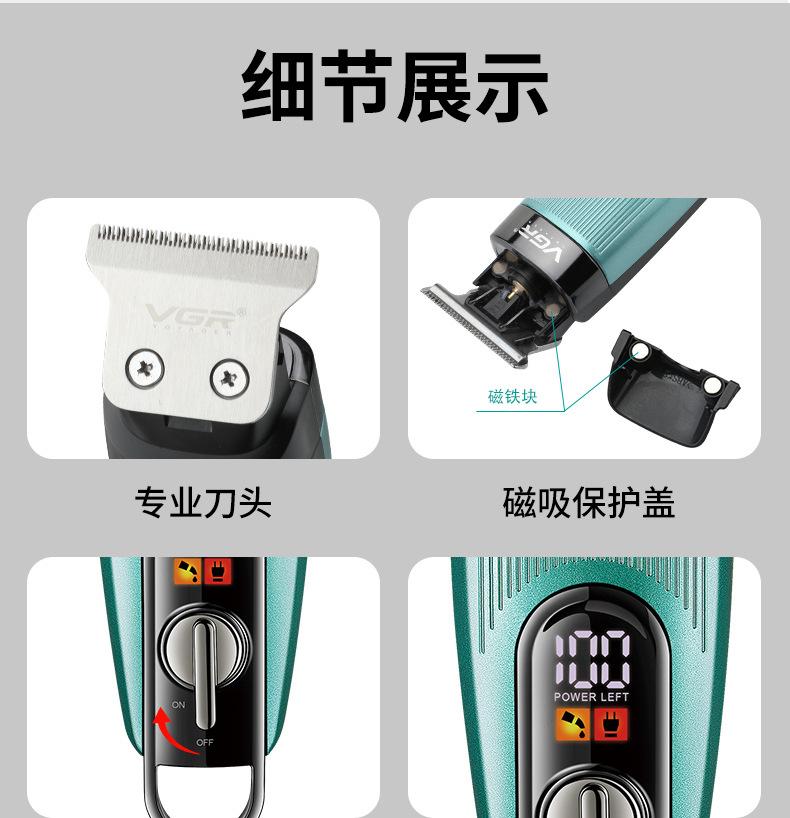 Vgr975 Nuevo Cortapelos Transfronterizo de Cabeza de Aceite Recargable Pantalla Digital Peluquería Tallado Marca Salón de Peluquería Profesional Cortapelos Eléctrico
