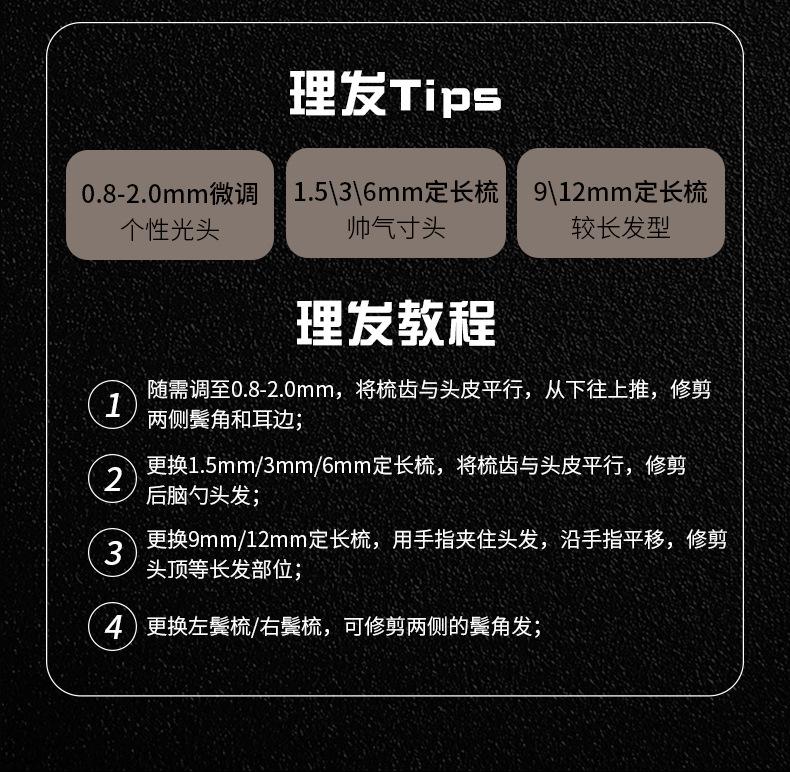 5. Equipado con 8 peines de límite de diferentes tamaños.
