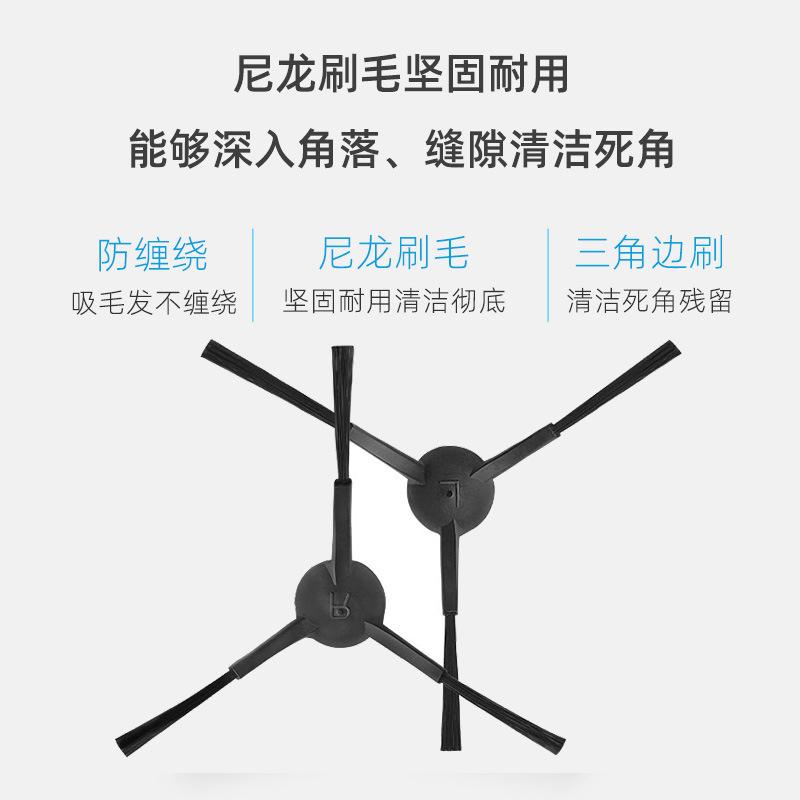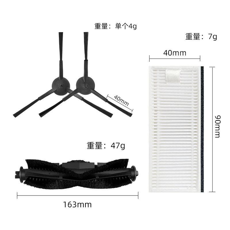 1 Main brush, 1 pair of edge brushes, 1 filter screen, 1 cleaning brush
