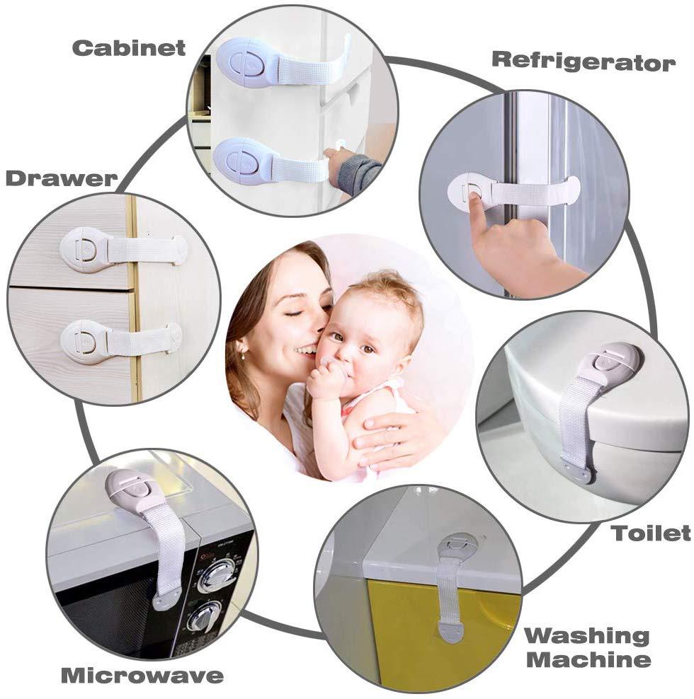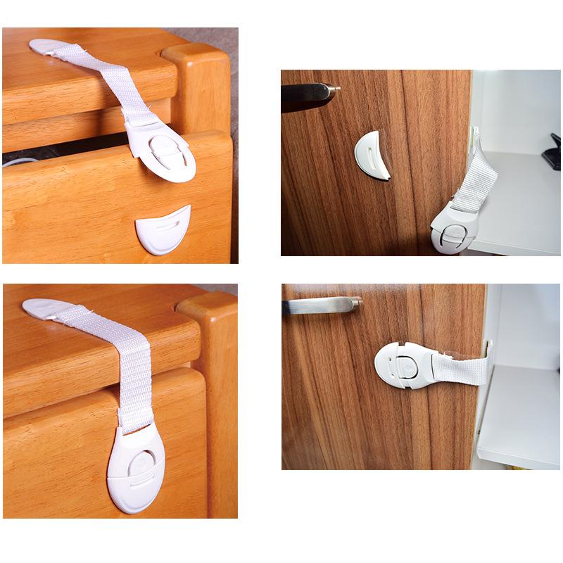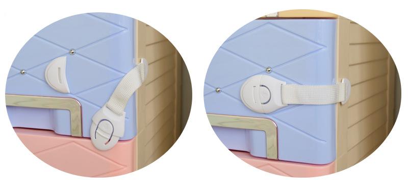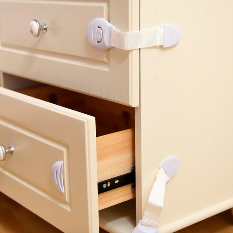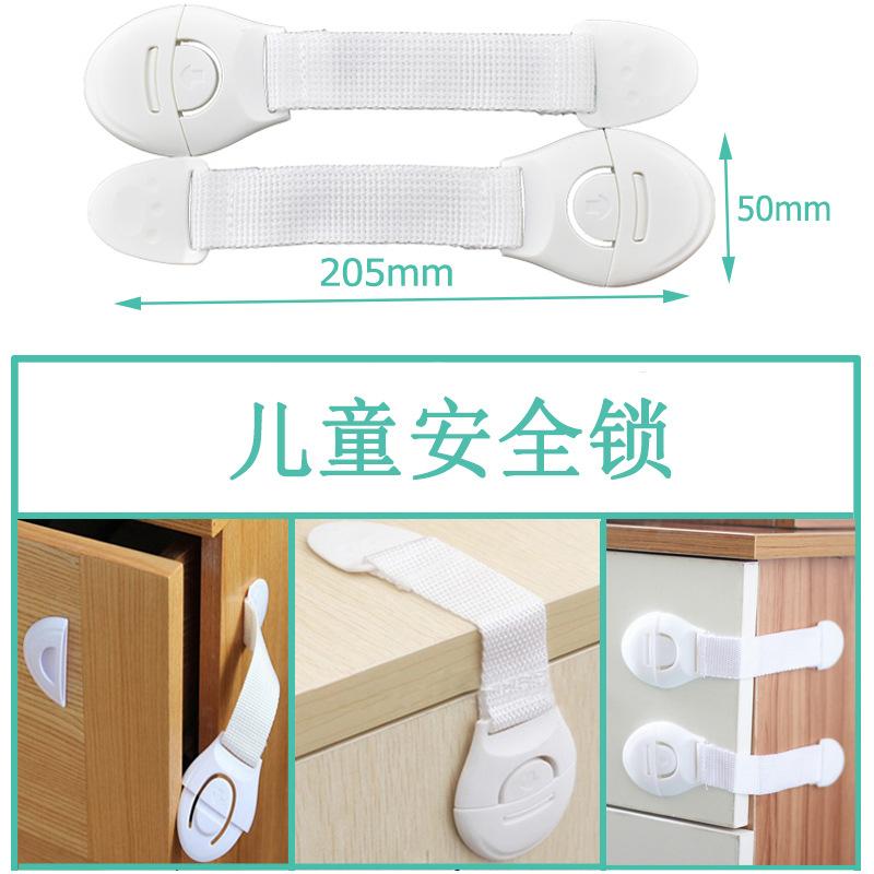 Cerradura de seguridad multifuncional para cajón de puerta alargada para niños, con cinta antipellizcos y cierre de seguridad de tela para manos.