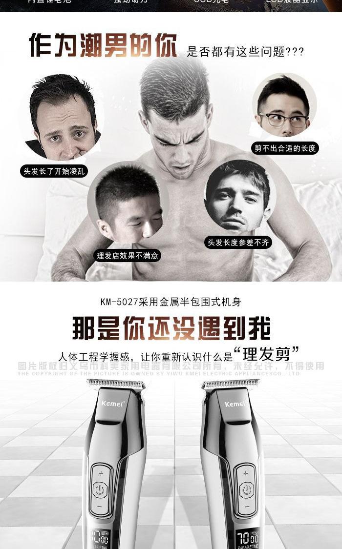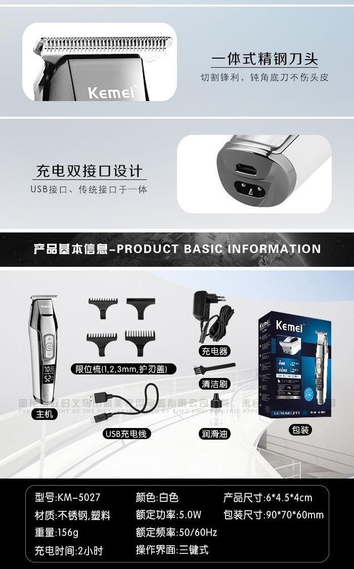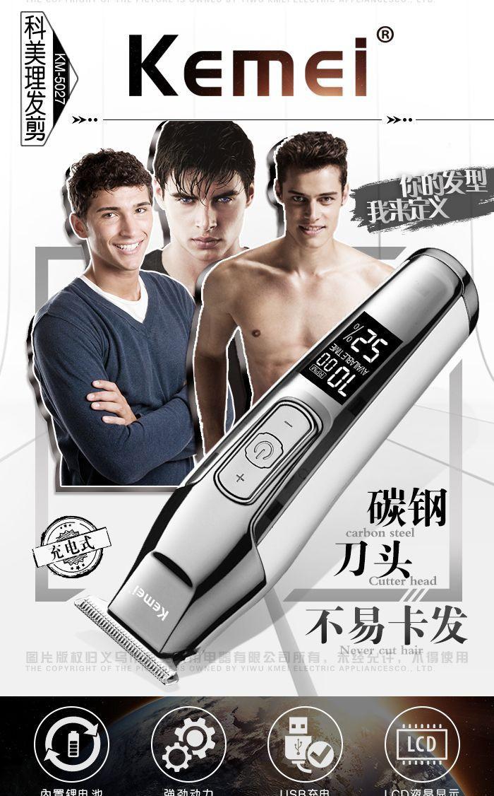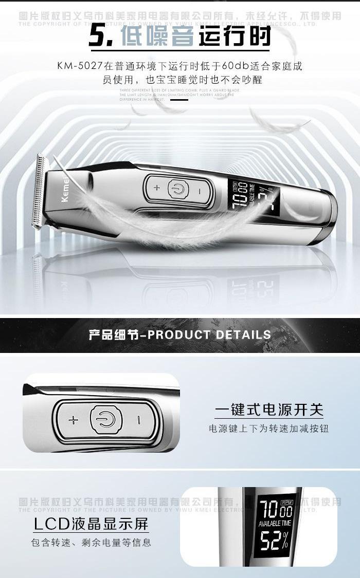 Cortadora de pelo Comey KM-5027 con reducción de ruido silenciosa y pantalla digital LCD LED, cortadora de pelo eléctrica para peluquerías.