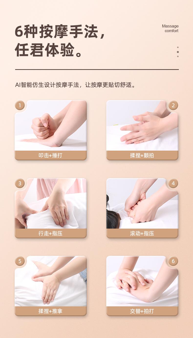 Slap, Hot compress, Air pressure, Airbag, Massage, Percussion, Kneading