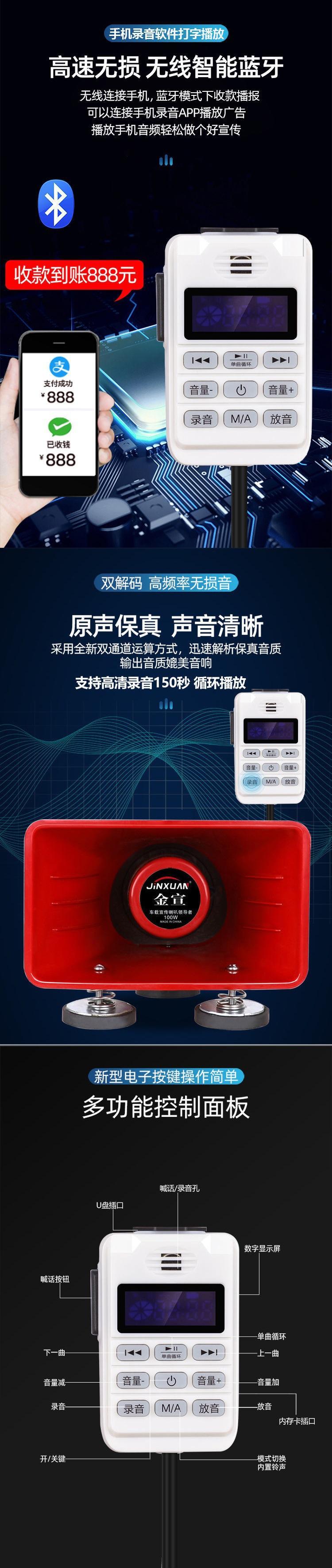 150w bluetooth version 12-90v steel cannon speaker, 120w bluetooth version 12-90v steel cannon speaker, 100W +...