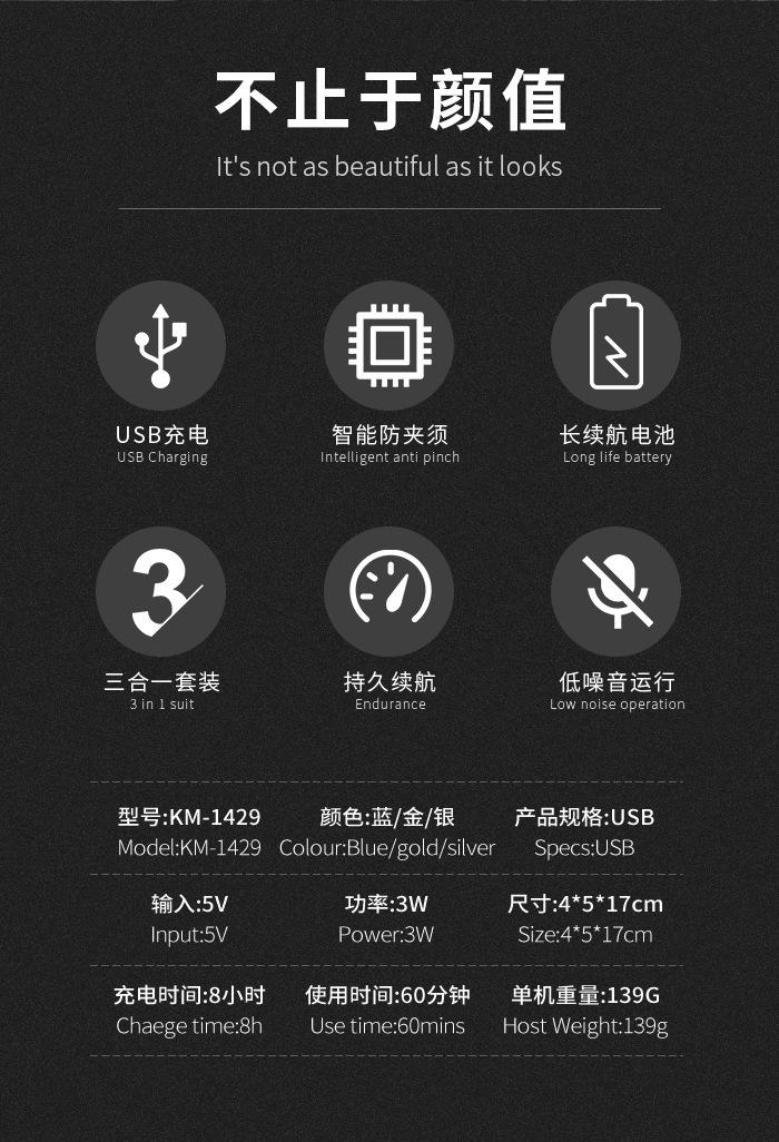 Compra Kemei Kemei Afeitadora Multifuncional Recíproca KM-1429 Eléctrica para Hombre Corte de Cabello Afeitadora para Vello Nasal 3 en 1 al por mayor en Joom.pro