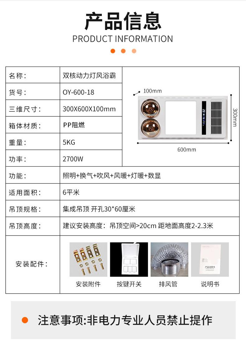 Calentador de Baño con Calefacción de Aire, Lámpara de Calefacción para el Hogar, Lámpara Multifuncional Impermeable, Calentamiento Rápido Seis en Uno