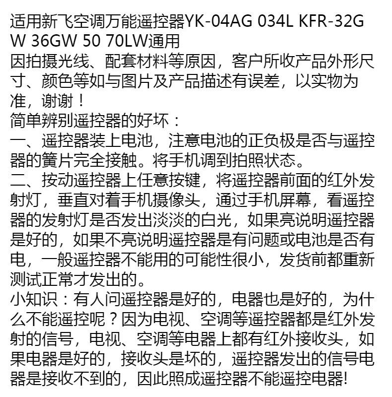 Control remoto universal para aire acondicionado Xinfei YK-04AG 034L KFR-32GW 36GW 50 70LW, etc.