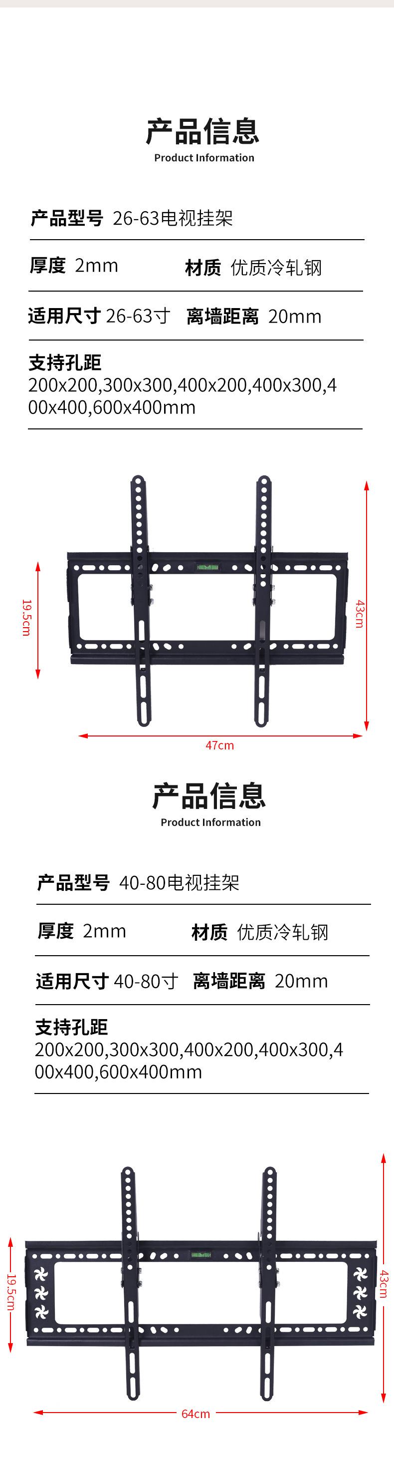 Soporte de Pared Universal para TV de 26~75 pulgadas al por mayor con Ángulo de Inclinación Ajustable y Soporte para TV de Alta Resistencia para Pantallas Grandes