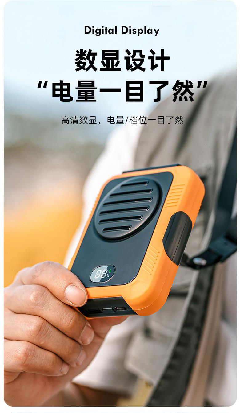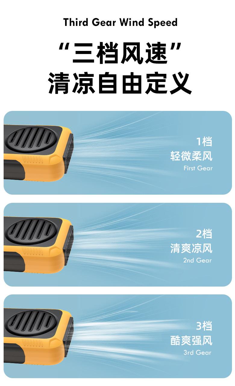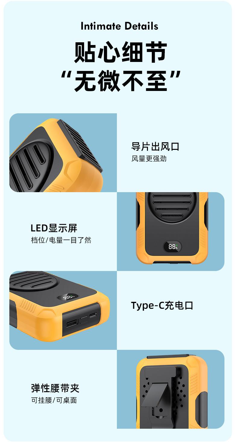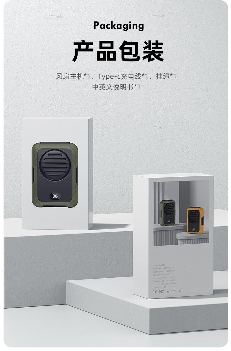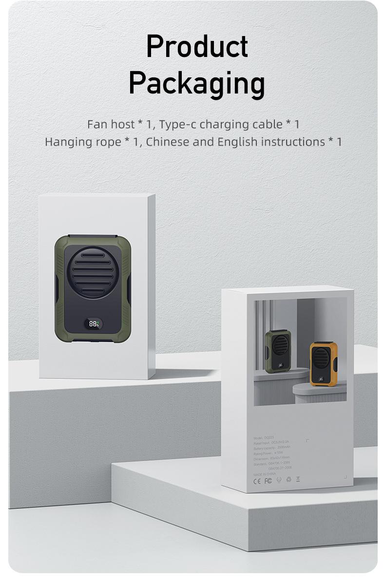 Detalles de los accesorios incluidos con el producto: host del ventilador*1, cable de carga Tipo-c*1, cordón*1, manual en chino e inglés*1.