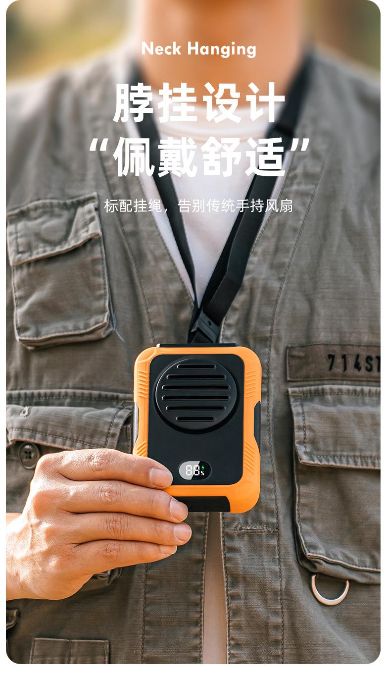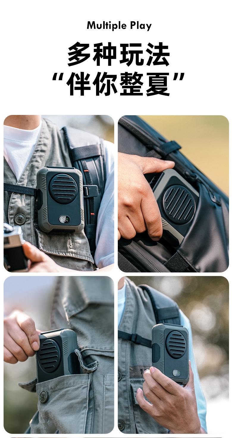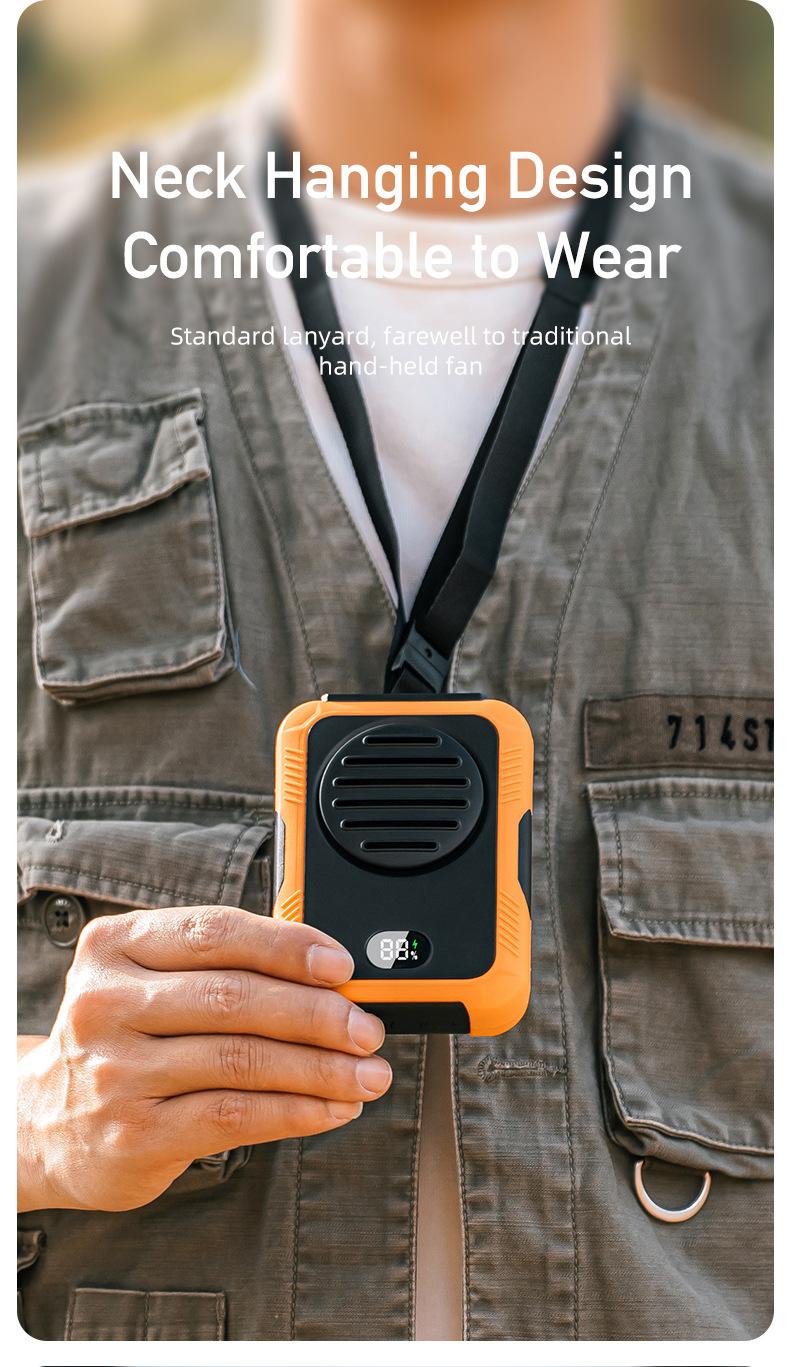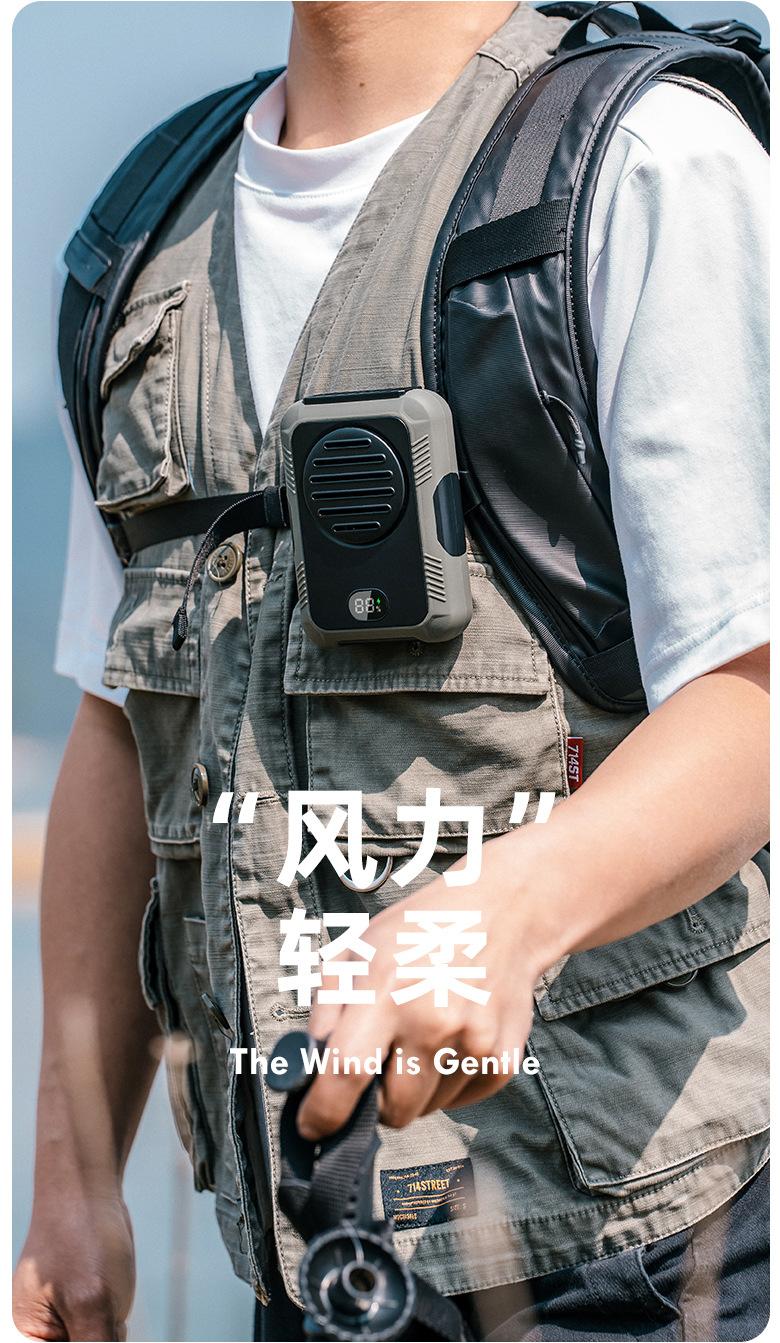 Detalles de los accesorios incluidos con el producto: host del ventilador*1, cable de carga Tipo-c*1, cordón*1, manual en chino e inglés*1.