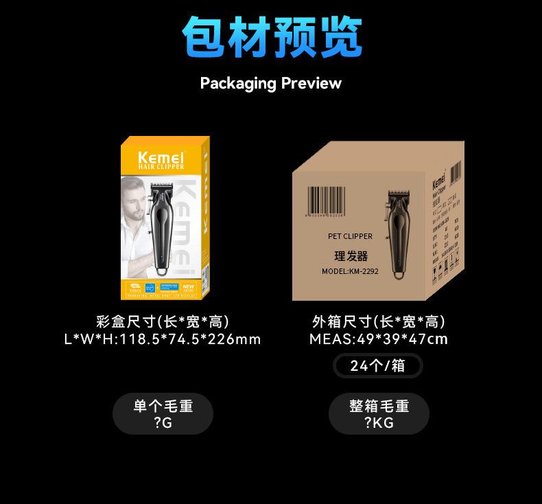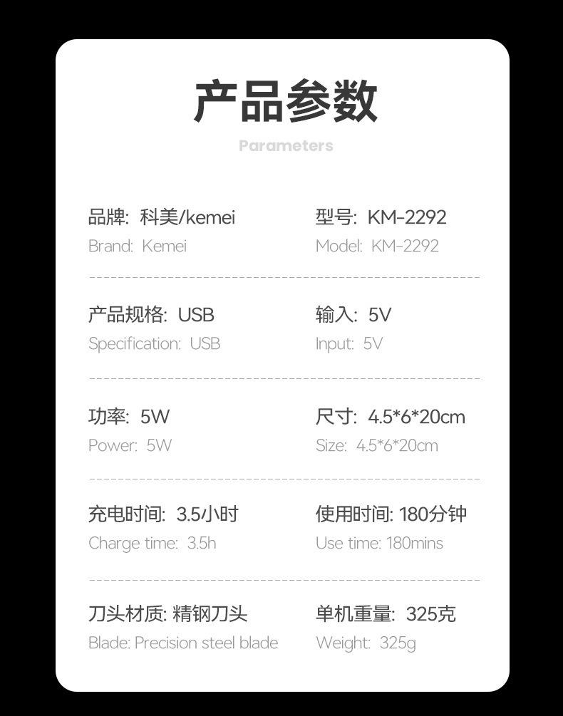 KM-2292 Kemei/KEMEI cortadora de pelo eléctrica profesional cortadora de pelo peluquería cortadora eléctrica especial para afeitar el cabello