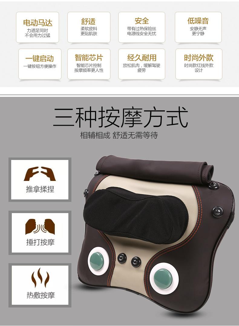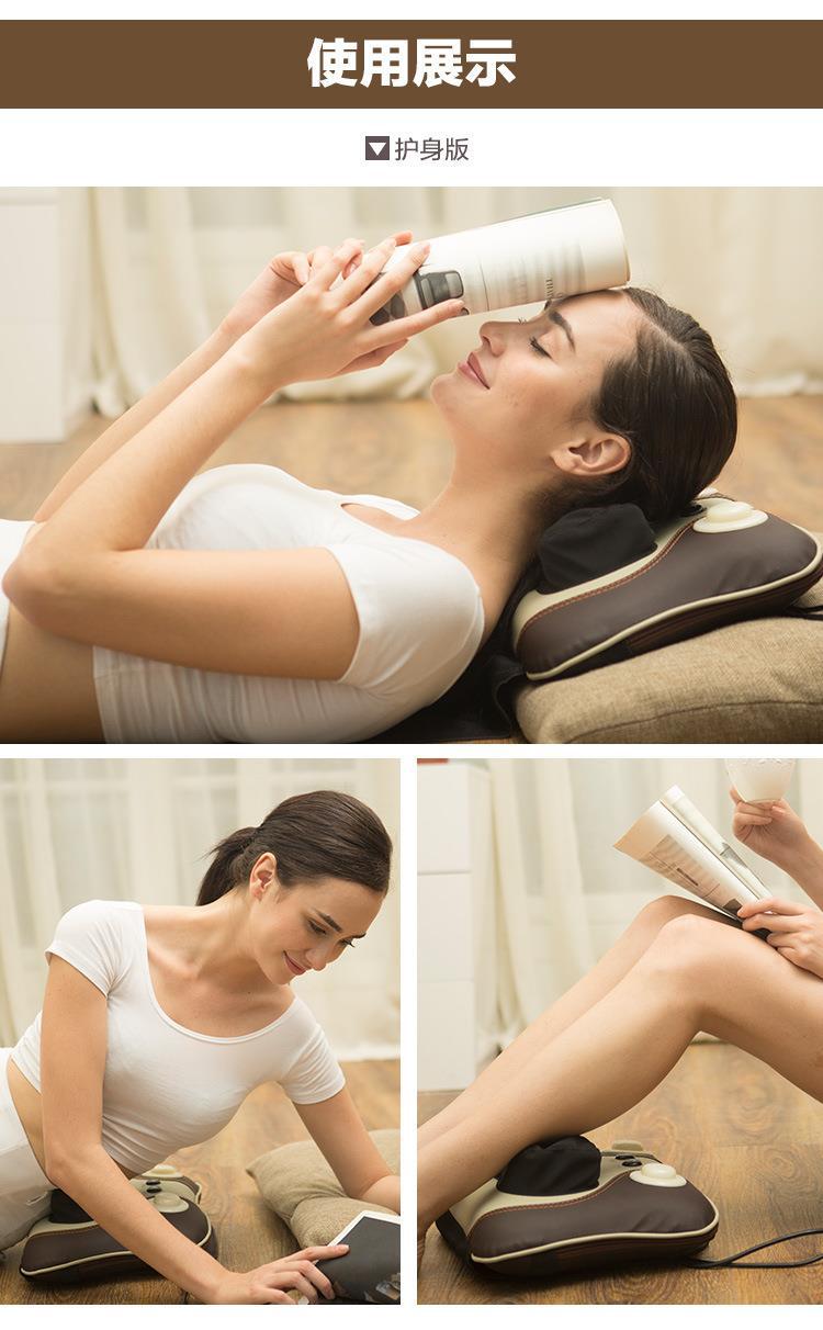 Esta almohada de masaje tiene seis cabezales de masaje. La rotación hacia adelante es para masaje de amasamiento y acupresión, mientras que la rotación inversa es para masaje de golpeteo. El producto tiene ajuste de velocidad continuo. Está equipado con un cable de alimentación engrosado y alargado y un potente motor grande, lo que hace que el producto masajee con mayor intensidad y funcione durante más tiempo. Cada máquina también viene con una capa grande a prueba de polvo.