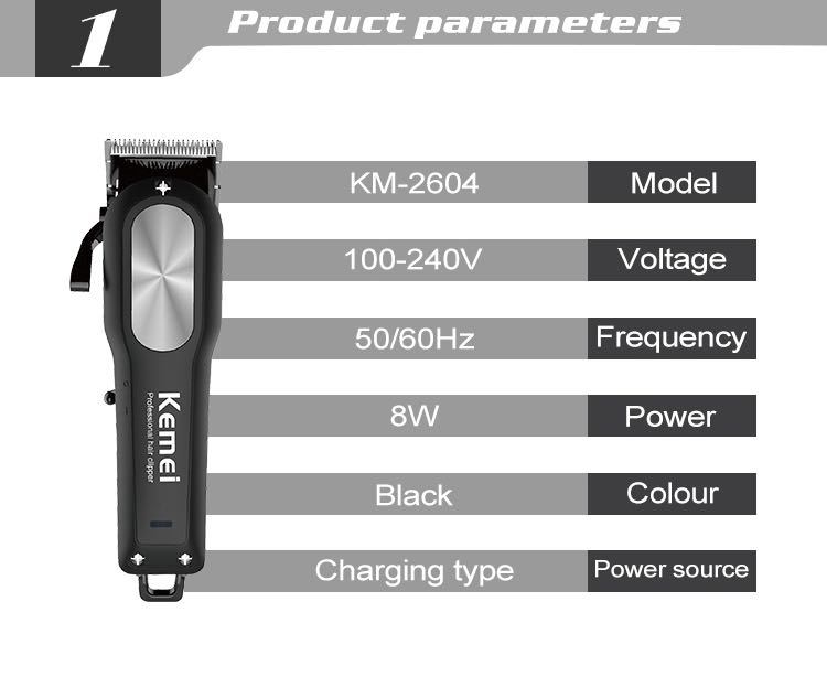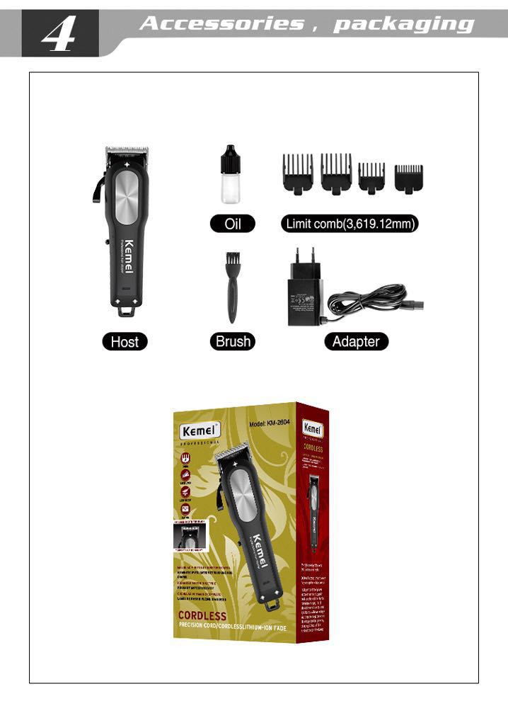 Cortadora de pelo KEMEI KM-2604 con cabezal de aceite recargable, cortadora de pelo multifunción especial para el hogar.