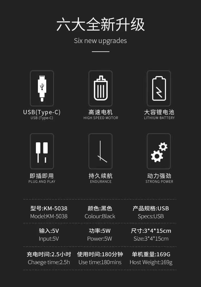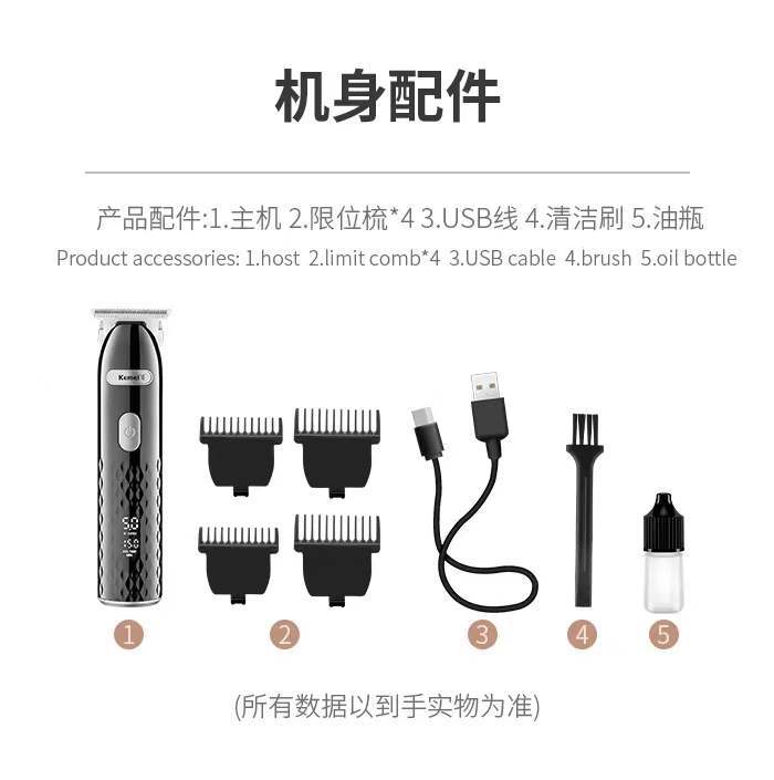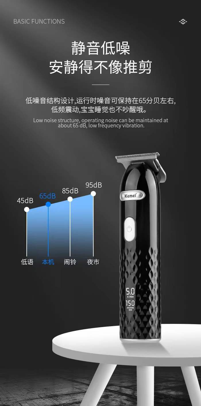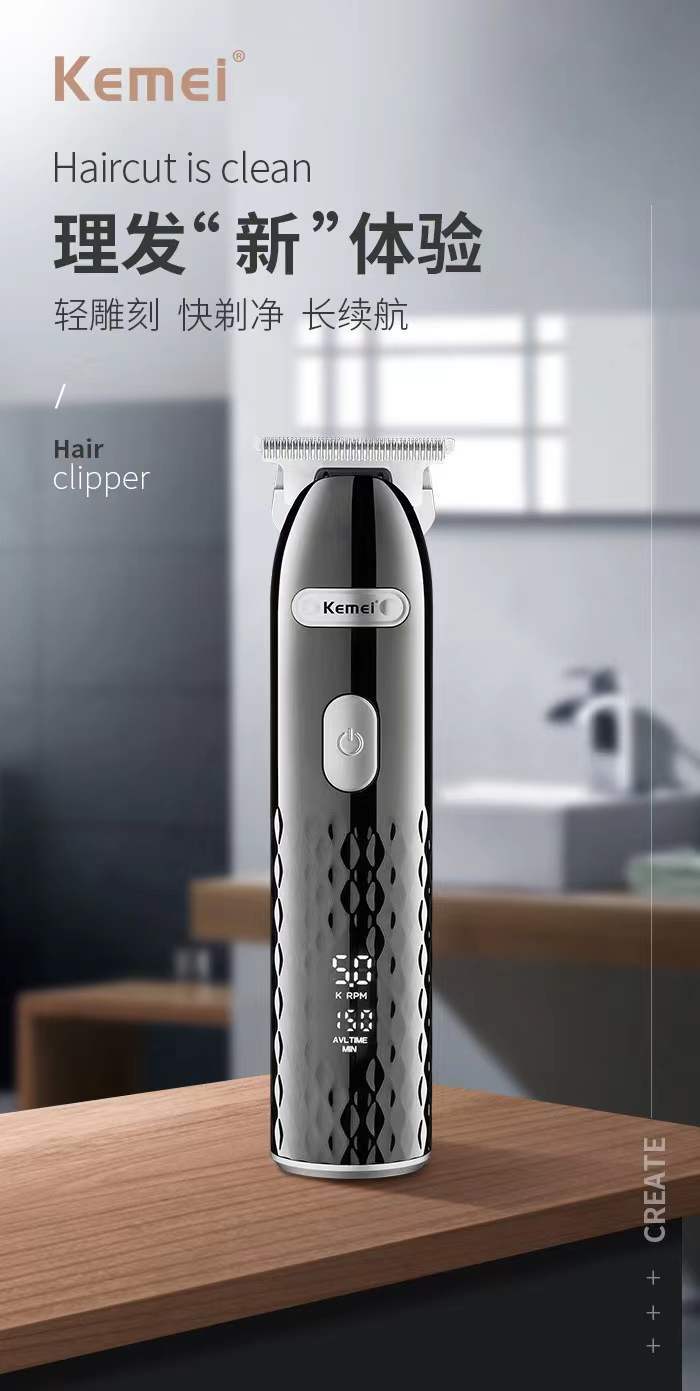 Cortadora eléctrica Kemei KM-5038 con pantalla digital LED LCD y cabezal de aceite de tallado de velocidad ajustable. Cortadora de cabello.
