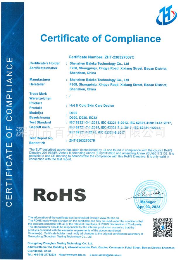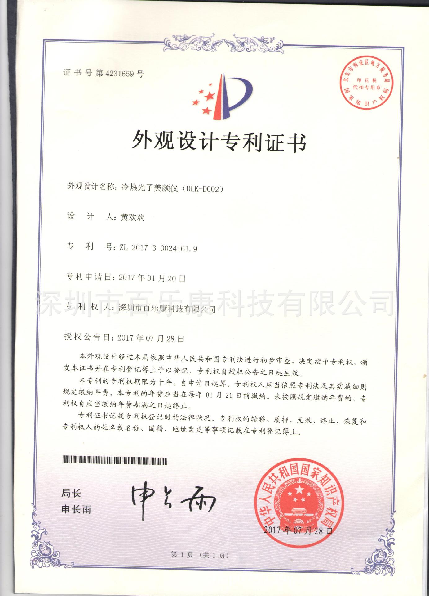 D002 Dispositivo de Belleza Fotónico Frío y Caliente Patente de Apariencia ZL 2017 3 0024161.9: