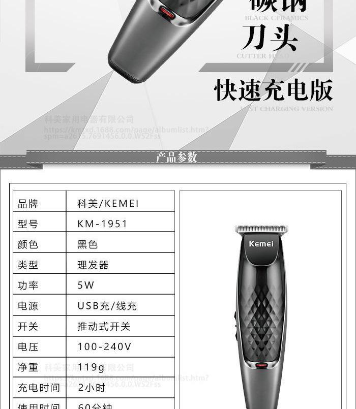 Kemei Km-1951 Cortadora de Cabello Eléctrica Cabezal de Afeitado Tallado Cortadora de Cabello Salón de Peluquería Especial Cortadora Eléctrica