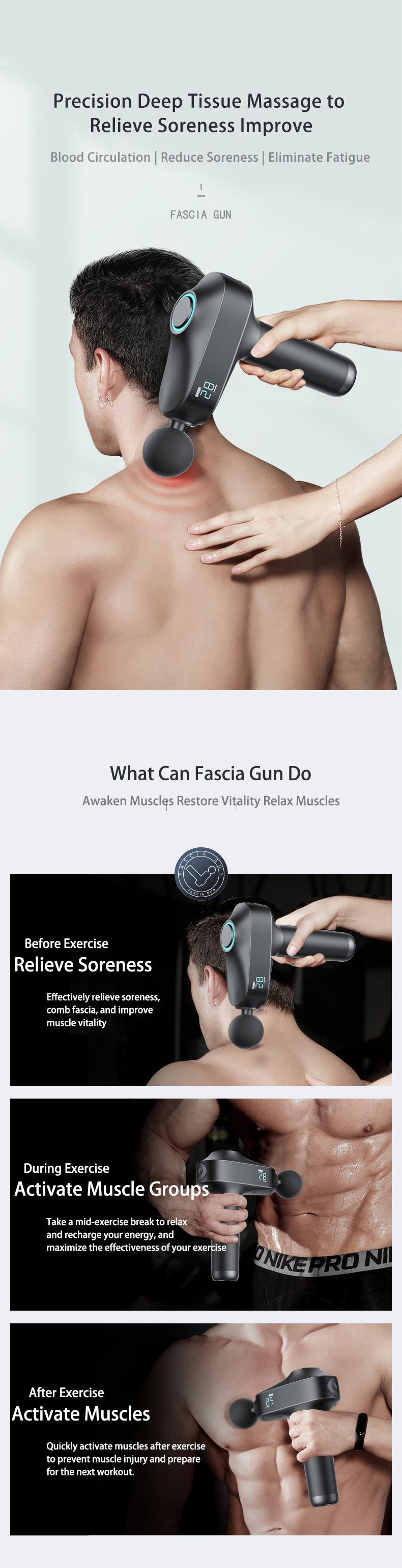 Pistola de fascia transfronteriza relajante muscular Amazon explosivo pistola de fascia pistola de masaje masajeador muscular 30 velocidades sin escobillas