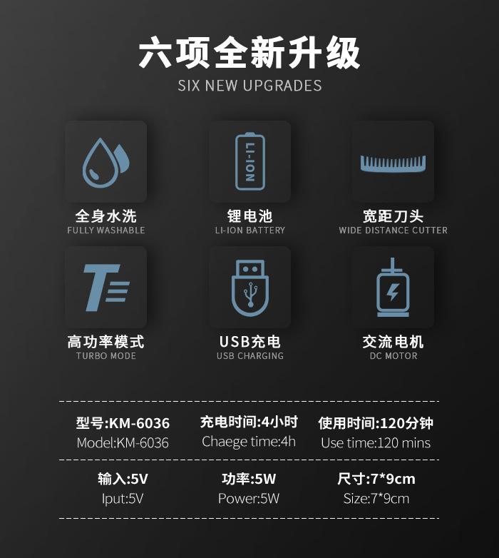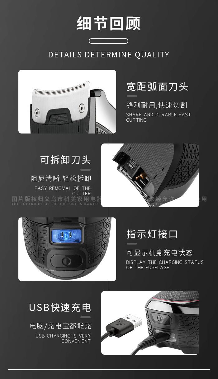 Kemei Km-6036 Cortadora de Cabello Especial Autoservicio Eléctrica de Alta Potencia Lavable para el Hogar Artefacto Calvo Afeitado Propio para Hombre