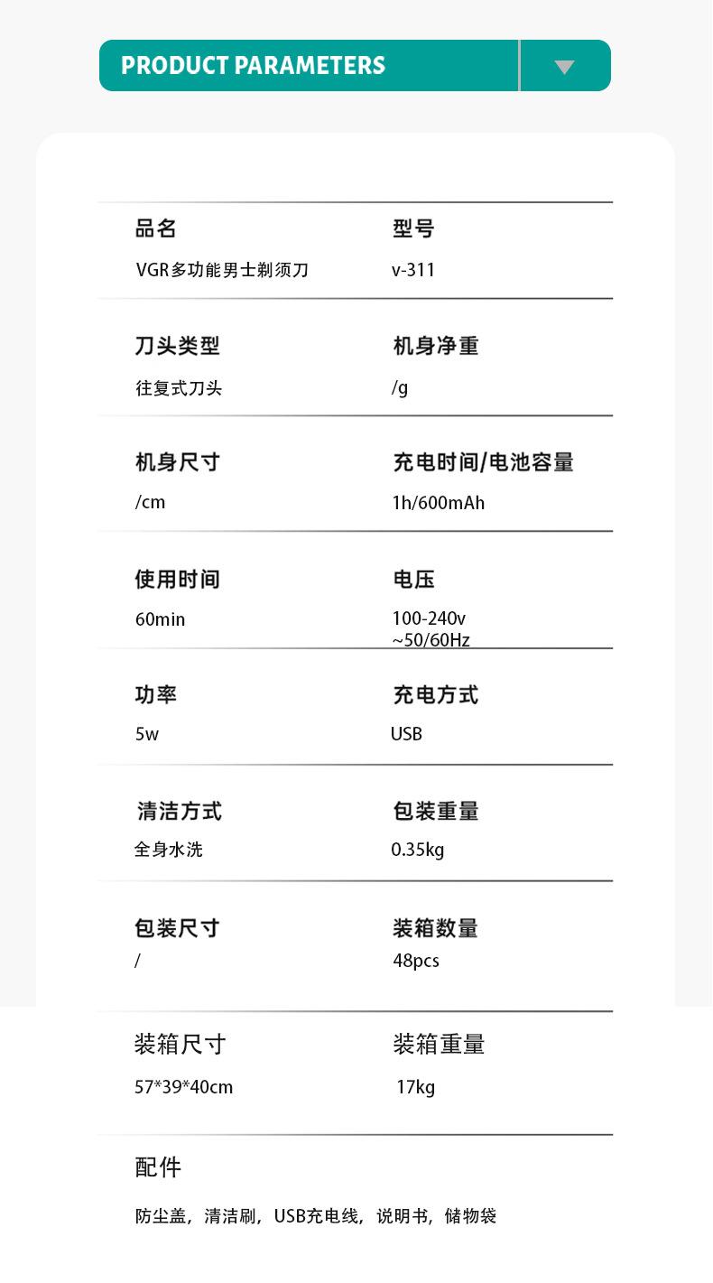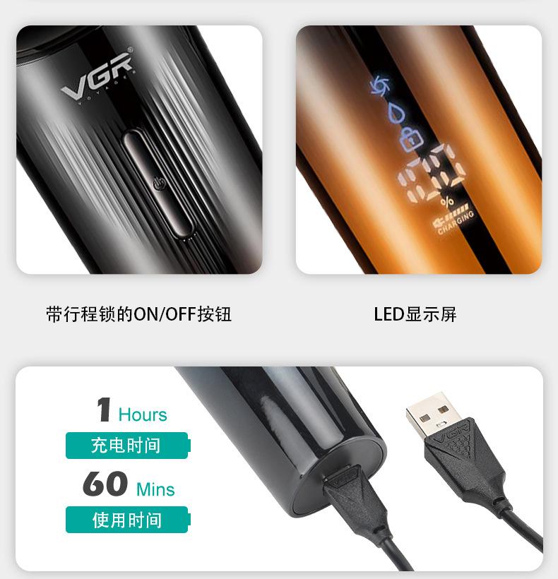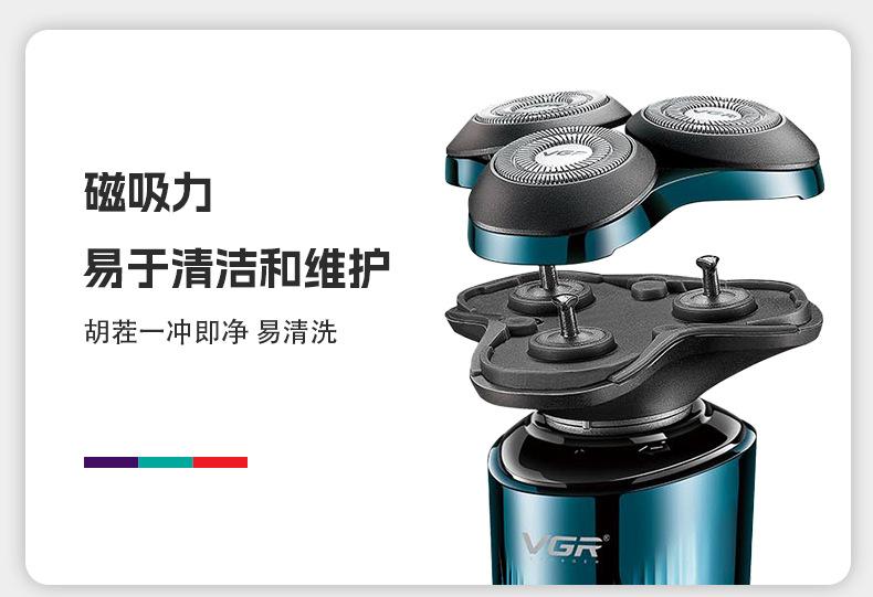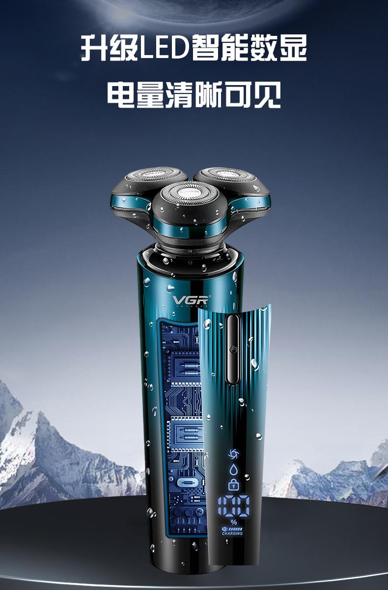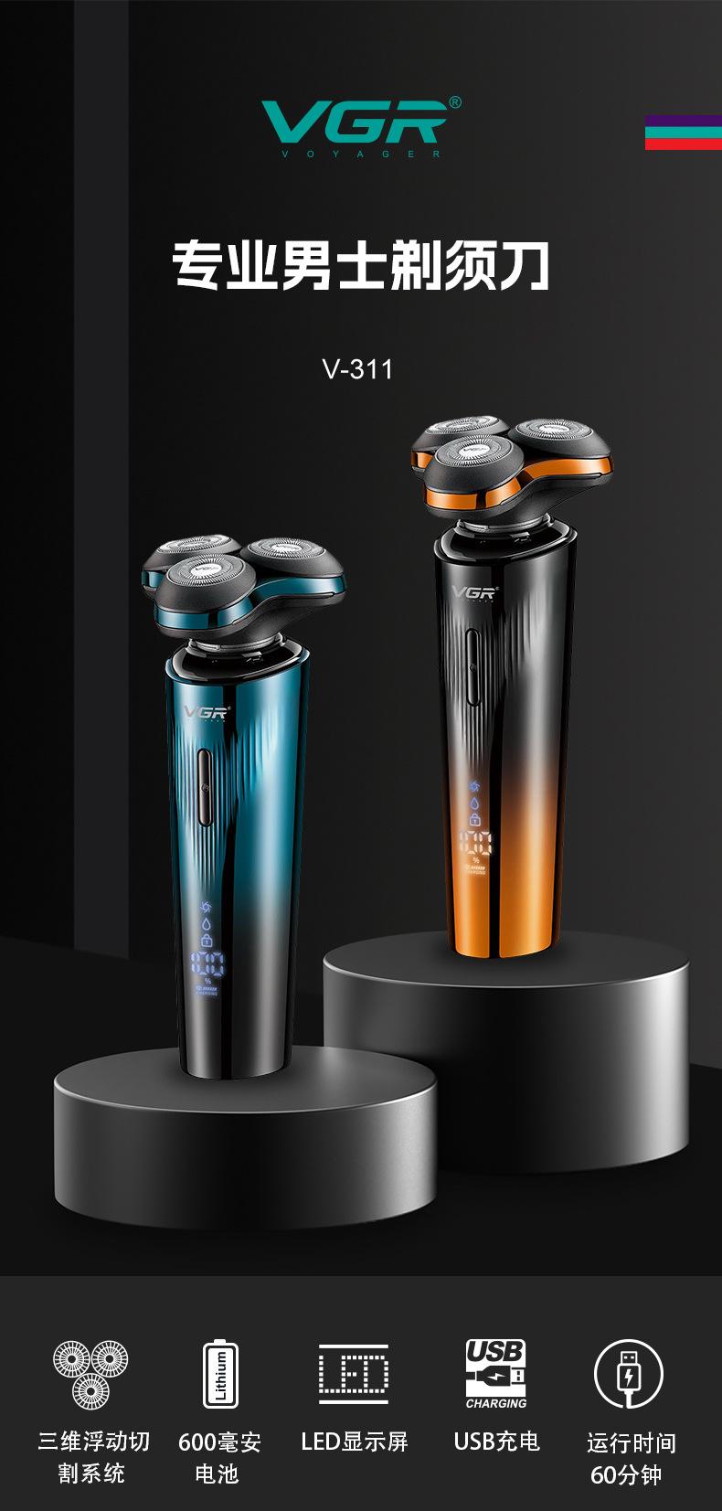 Vgr311 Afeitadora Eléctrica Magnética Transfronteriza de Malla Afeitadora Pantalla Digital Ipx7 Impermeable Flotante de Tres Cabezales Afeitadora Bicolor