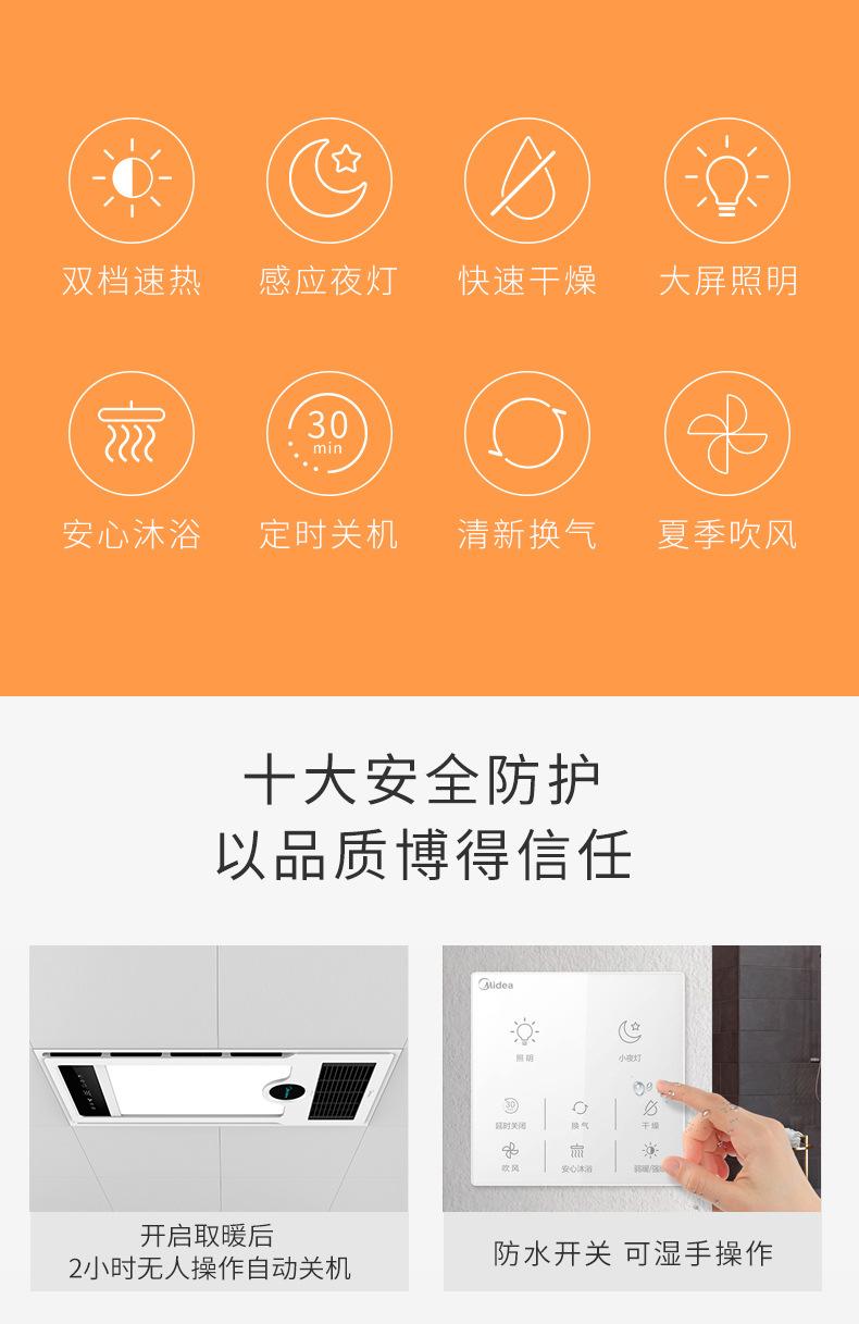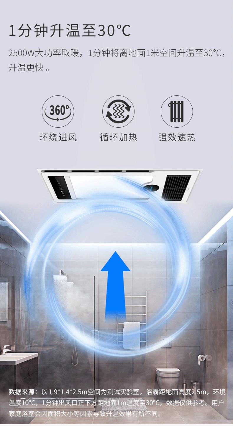 Calentador de baño multifuncional ultrafino con calefacción rápida por viento Midea Yuba para techo integrado M0525 táctil