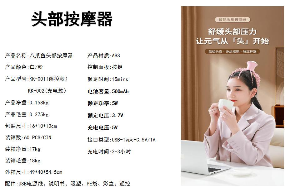 Masajeador de Cabeza Eléctrico Masajeador de Cuero Cabelludo Pulpo Vibración Relajación Masaje de Cabeza Garra Descompresión Dragado de Meridianos