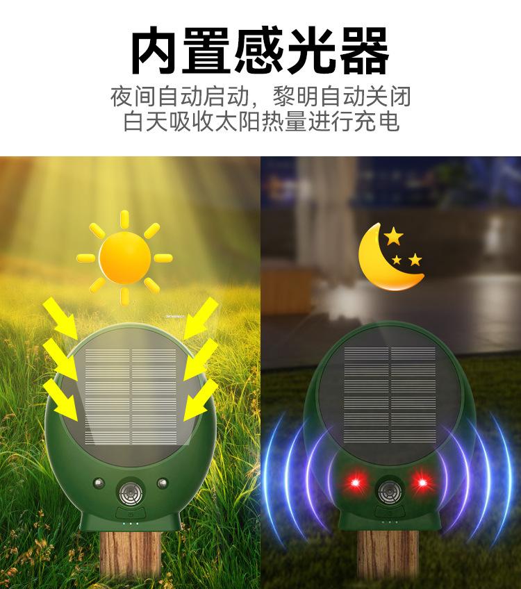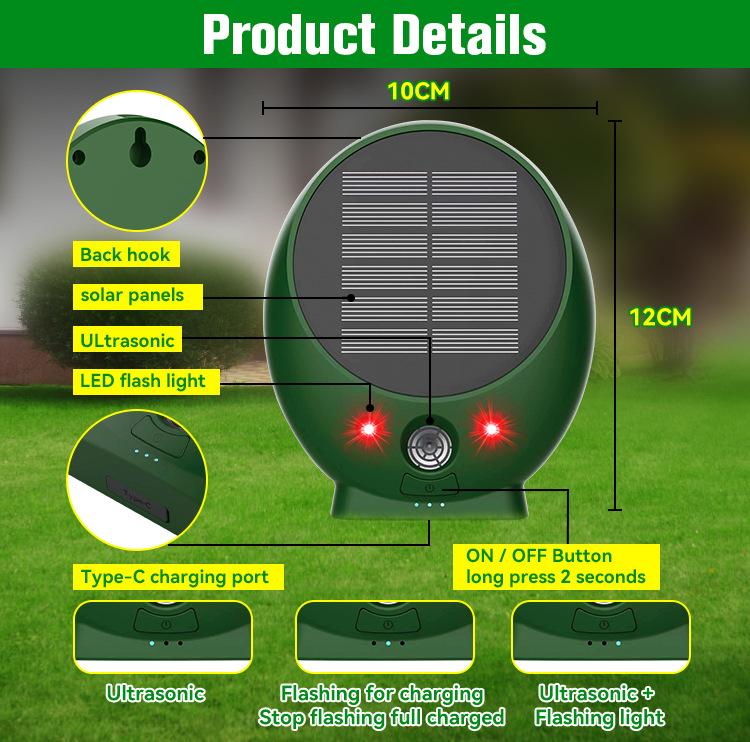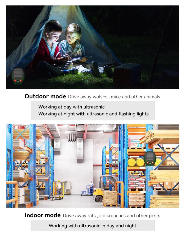 Función 2: Indicación de luz azul: Onda ultrasónica + luz LED roja/blanca para ahuyentar